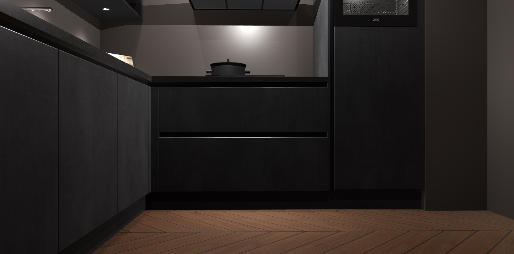Met een modern, tijdloos design en ruime opslagruimte, zult u zich in no-time thuis voelen in uw nieuwe keuken. Uw leven wordt eenvoudiger met de soft-close deuren die voor het ultieme stille comfort zorgen - geen geluid dat u stoort terwijl u kookt. Ook is de keuken voorzien van 5 ingebouwde apparaten: een oven, inductie kookplaat, afzuigkap, vaatwasser en koelkast. Deze kunnen gemakkelijk na bestelling worden bijgewerkt naar AEG - waardoor uw luxe ervaring compleet is.