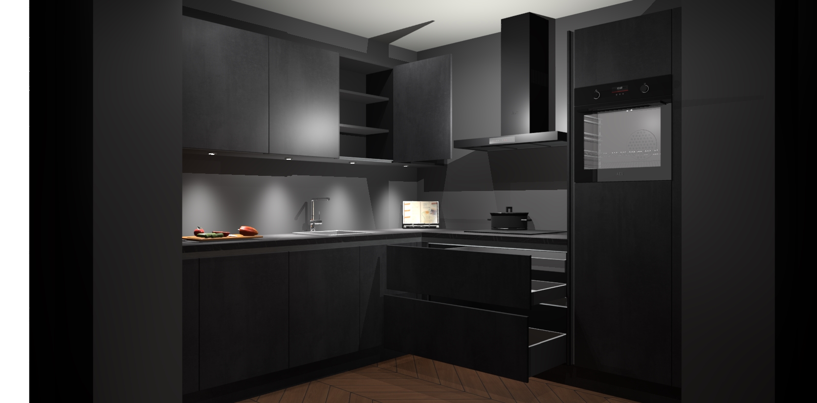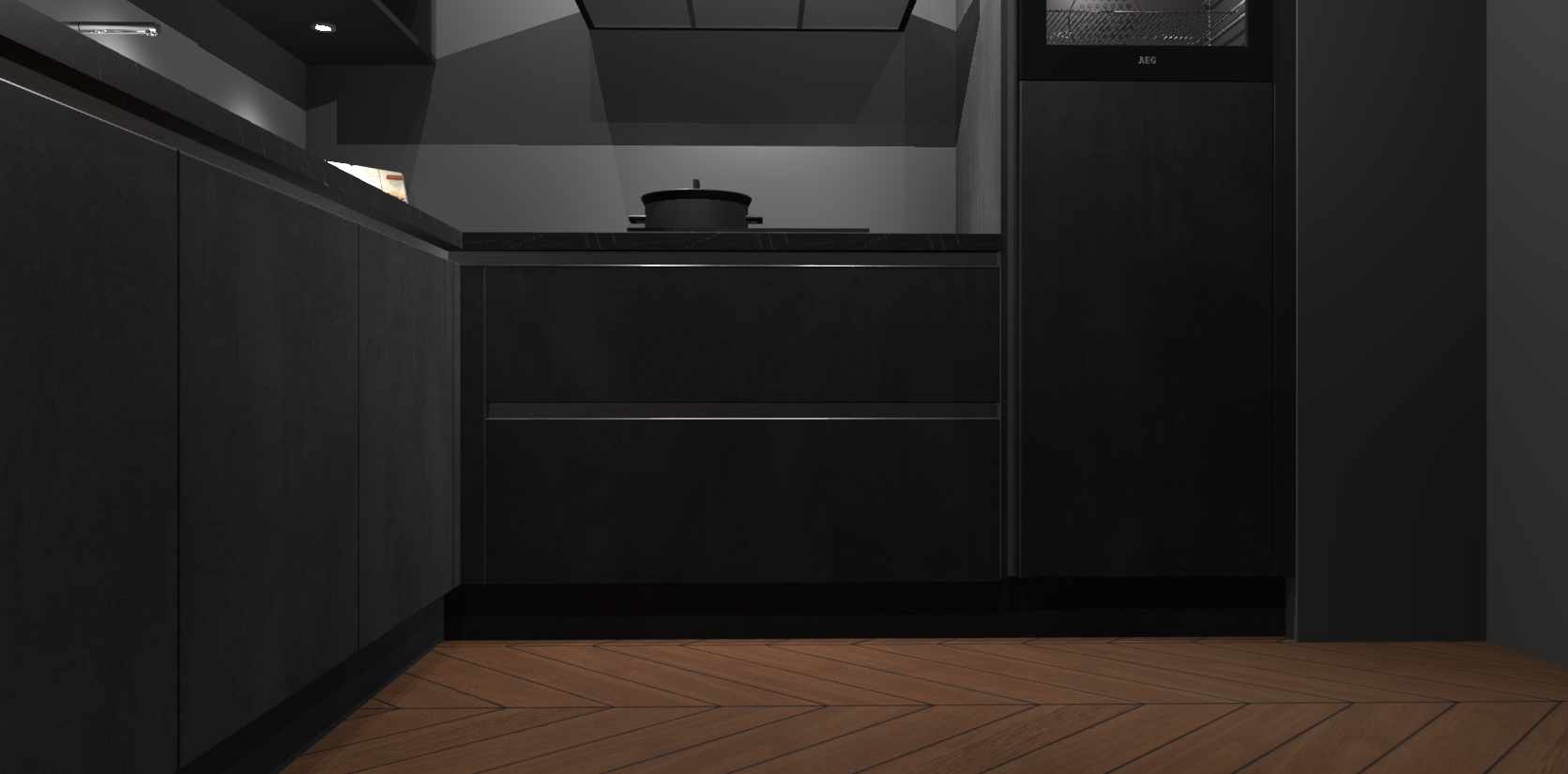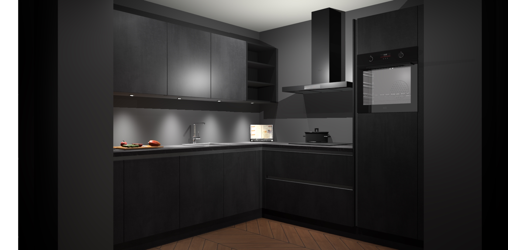 Met een modern, tijdloos design en ruime opslagruimte, zult u zich in no-time thuis voelen in uw nieuwe keuken. Uw leven wordt eenvoudiger met de soft-close deuren die voor het ultieme stille comfort zorgen - geen geluid dat u stoort terwijl u kookt. Ook is de keuken voorzien van 5 ingebouwde apparaten: een oven, inductie kookplaat, afzuigkap, vaatwasser en koelkast. Deze kunnen gemakkelijk na bestelling worden bijgewerkt naar AEG - waardoor uw luxe ervaring compleet is.
