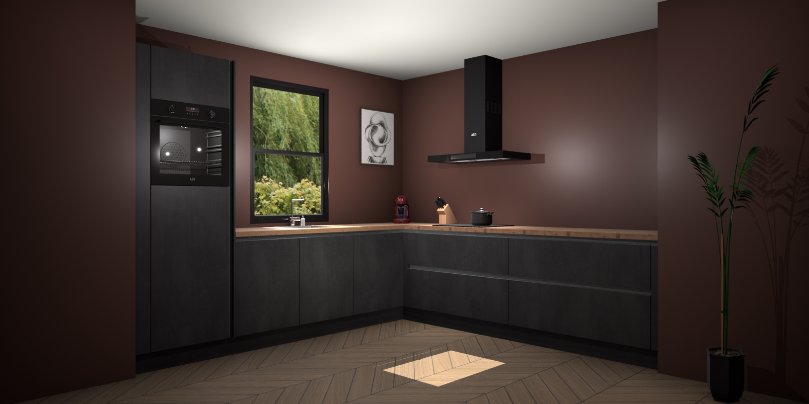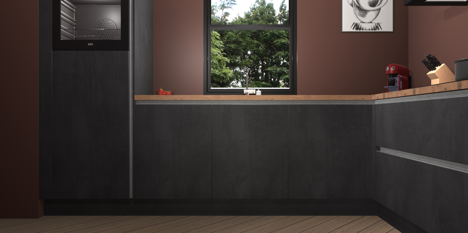 Welkom bij de Beton zwarte greeploze keuken Lublin. Deze prachtige keuken zal de komende jaren het middelpunt van de belangstelling in uw huis zijn. Uitgerust met vijf inbouwapparaten komt u nooit kookgereedschap tekort. Bovendien geeft de warme houtlook elke ruimte een uitnodigende en tijdloze uitstraling.