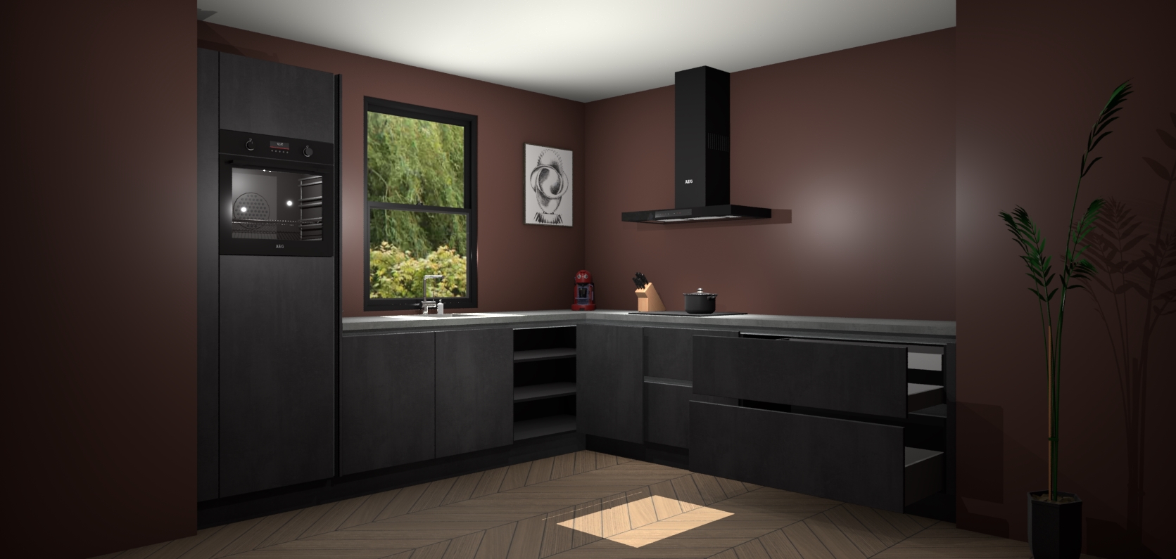 Welkom bij de Beton zwarte greeploze keuken Lublin. Deze prachtige keuken zal de komende jaren het middelpunt van de belangstelling in uw huis zijn. Uitgerust met vijf inbouwapparaten komt u nooit kookgereedschap tekort. Bovendien geeft de warme houtlook elke ruimte een uitnodigende en tijdloze uitstraling.