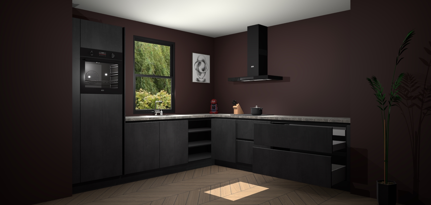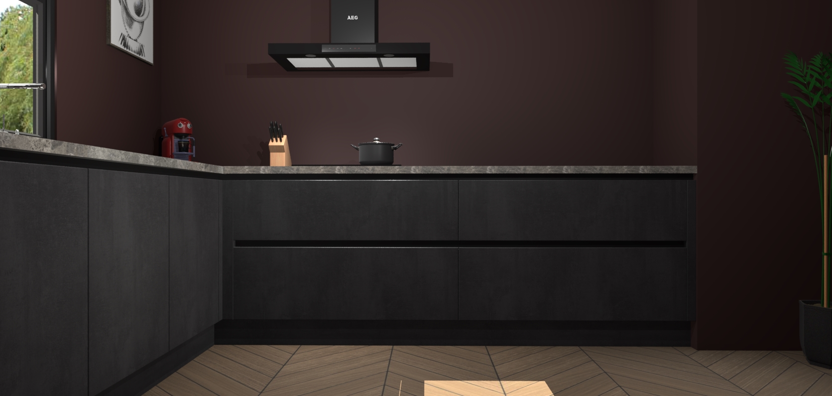 Welkom bij de Beton zwarte greeploze keuken Lublin. Deze prachtige keuken zal de komende jaren het middelpunt van de belangstelling in uw huis zijn. Uitgerust met vijf inbouwapparaten komt u nooit kookgereedschap tekort. Bovendien geeft de warme houtlook elke ruimte een uitnodigende en tijdloze uitstraling.