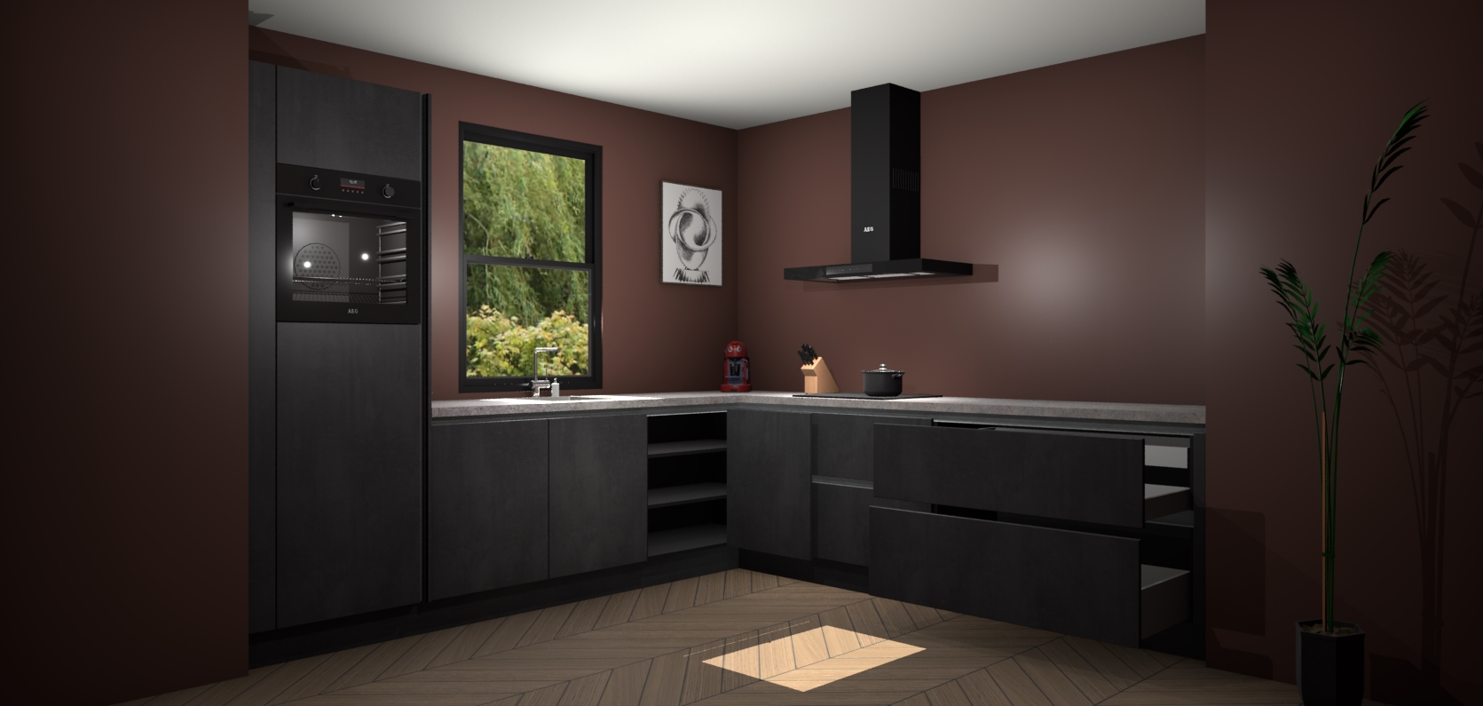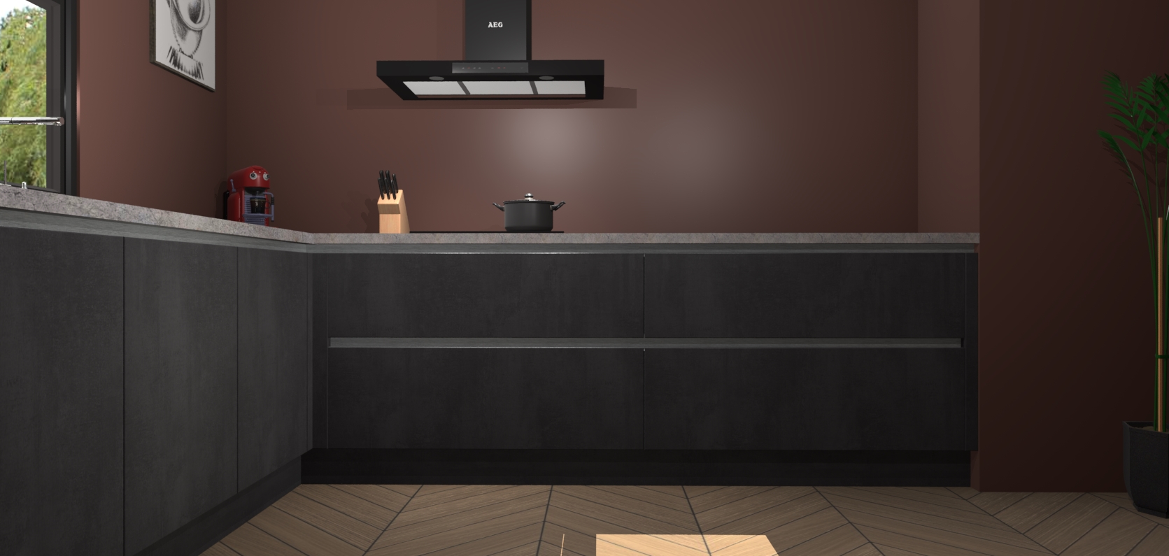 Welkom bij de Beton zwarte greeploze keuken Lublin. Deze prachtige keuken zal de komende jaren het middelpunt van de belangstelling in uw huis zijn. Uitgerust met vijf inbouwapparaten komt u nooit kookgereedschap tekort. Bovendien geeft de warme houtlook elke ruimte een uitnodigende en tijdloze uitstraling.