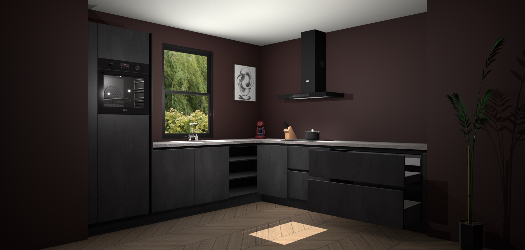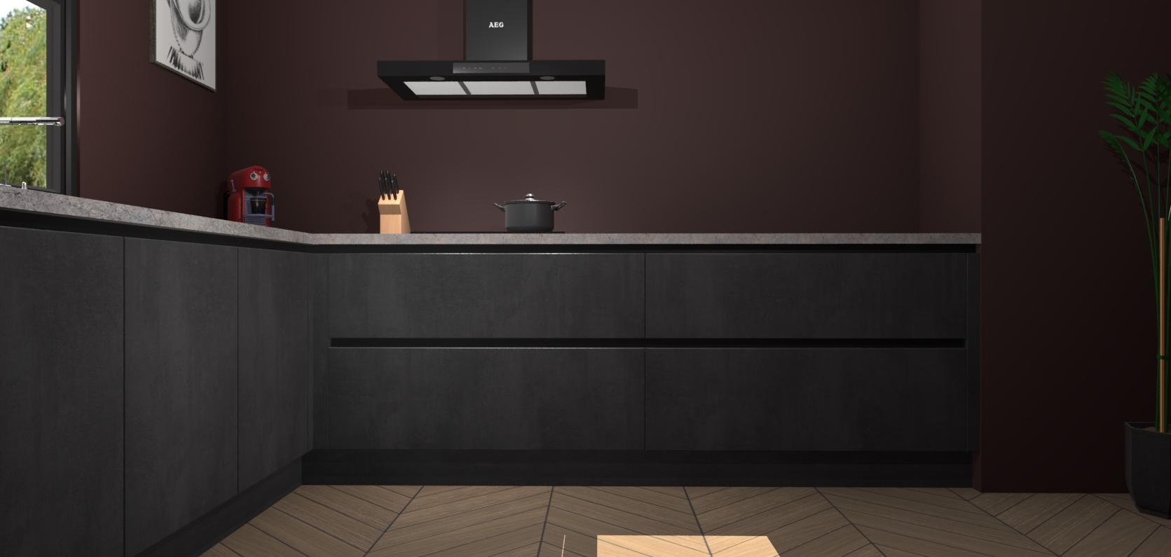 Welkom bij de Beton zwarte greeploze keuken Lublin. Deze prachtige keuken zal de komende jaren het middelpunt van de belangstelling in uw huis zijn. Uitgerust met vijf inbouwapparaten komt u nooit kookgereedschap tekort. Bovendien geeft de warme houtlook elke ruimte een uitnodigende en tijdloze uitstraling.
