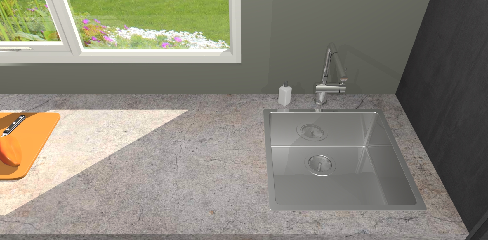 - De spoelbak is nog niet in gevreesd. Dit dient tijdens het werk gedaan te worden