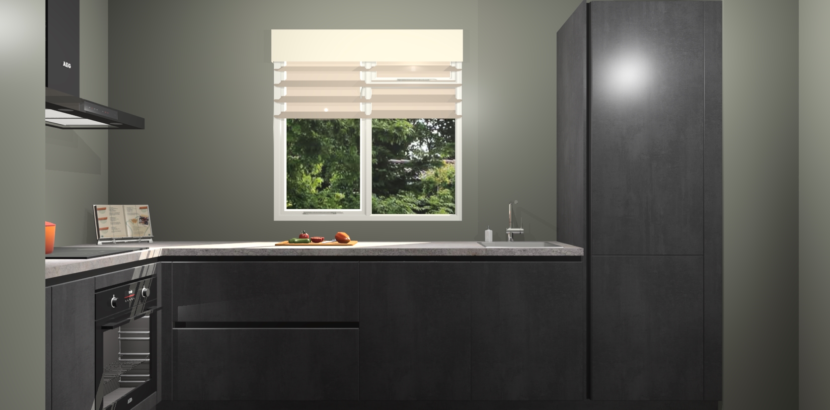 Moedige modernisten! De Beton Zwarte greeploze keuken Luzern is het perfecte antwoord op al uw keukendromen. Dit geraffineerde, tijdloze ontwerp combineert strakke greeploze kasten zodat u die dure look krijgt zonder het dure prijskaartje. We weten dat planning en uitvoering de sleutels zijn tot een geslaagde keukenrenovatie, dus hebben we ervoor gezorgd dat we vijf inbouwapparaten in ons pakket hebben: een oven, inductiekookplaat, afzuigkap, vaatwasser en koelkast. Deze kunnen na bestelling gemakkelijk worden uitgebreid voor nog meer gemak.