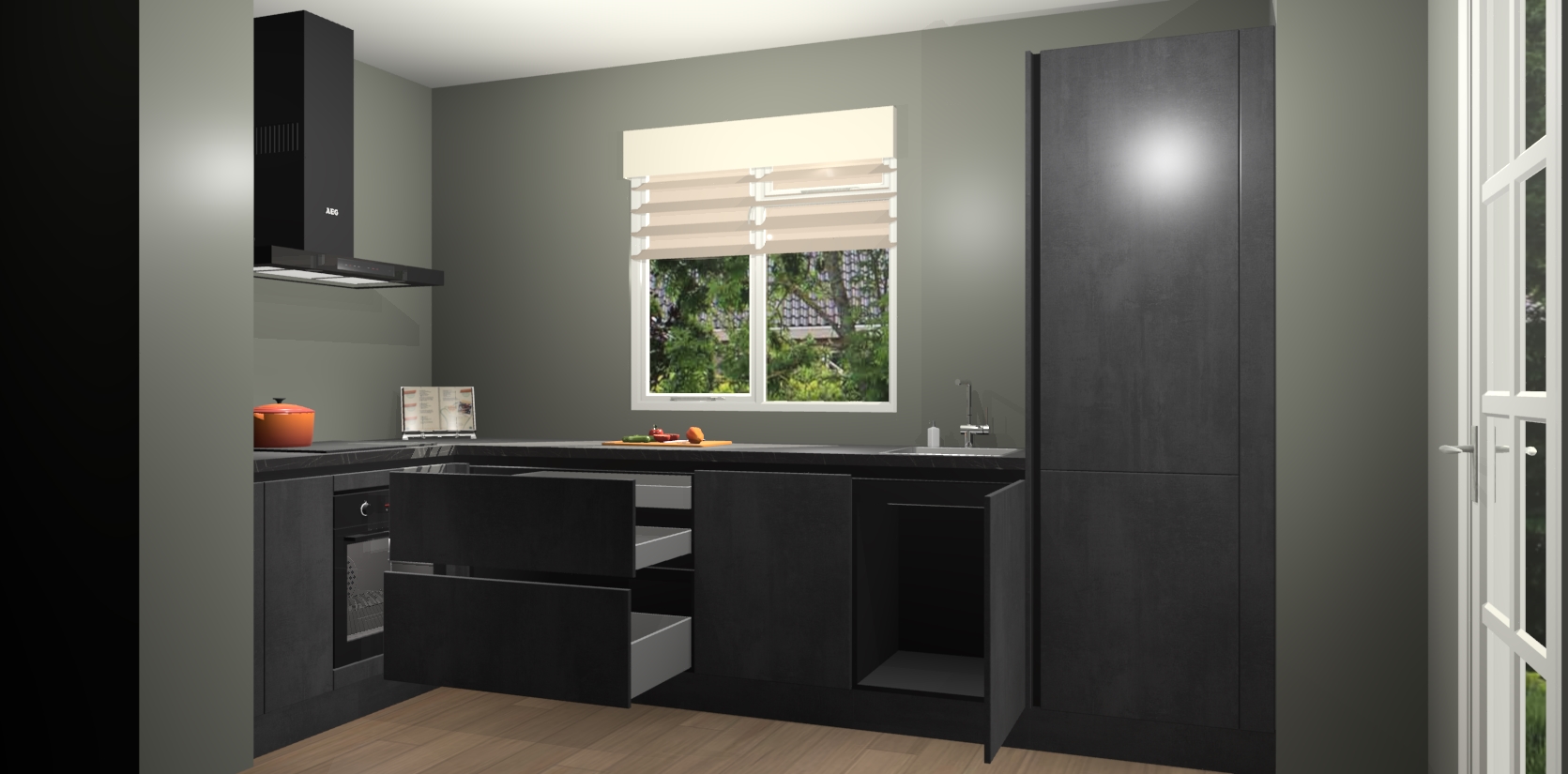 Moedige modernisten! De Beton Zwarte greeploze keuken Luzern is het perfecte antwoord op al uw keukendromen. Dit geraffineerde, tijdloze ontwerp combineert strakke greeploze kasten zodat u die dure look krijgt zonder het dure prijskaartje. We weten dat planning en uitvoering de sleutels zijn tot een geslaagde keukenrenovatie, dus hebben we ervoor gezorgd dat we vijf inbouwapparaten in ons pakket hebben: een oven, inductiekookplaat, afzuigkap, vaatwasser en koelkast. Deze kunnen na bestelling gemakkelijk worden uitgebreid voor nog meer gemak.