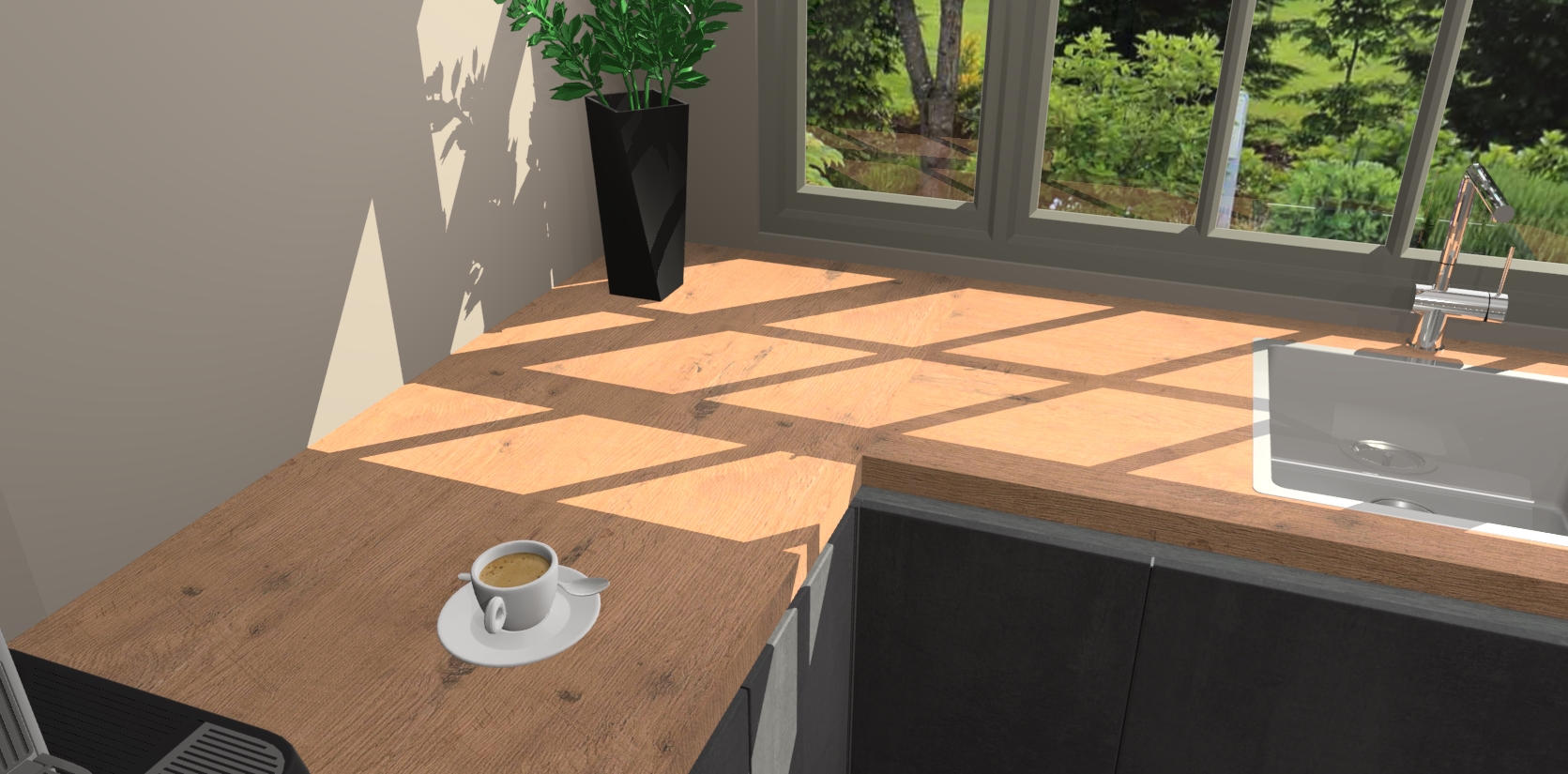 - Bij een hoekwerkblad zijn de hoeken in gevreesd en op maat gemaakt