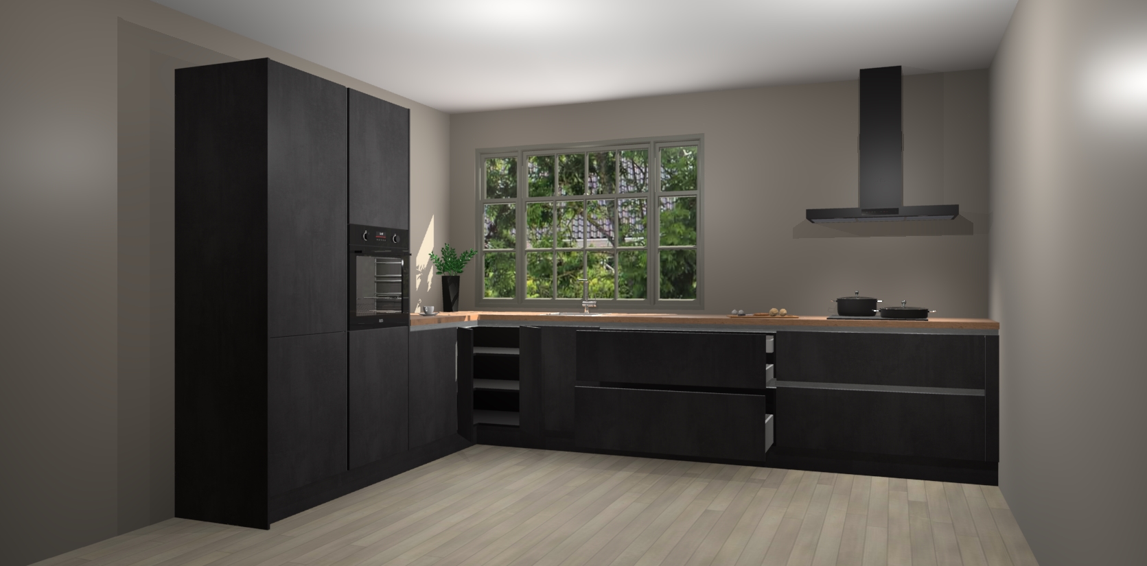 Kom dichtbij de perfecte keuken van uw dromen met de Beton Zwarte greeploze keuken Malaga. Met een prachtige houtlook en eigentijds ontwerp, straalt deze keuken warmte en sfeer uit. Of u nu liefhebber bent van traditionele of moderne stijlen, er is genoeg ruimte om aan al uw behoeften te voldoen.