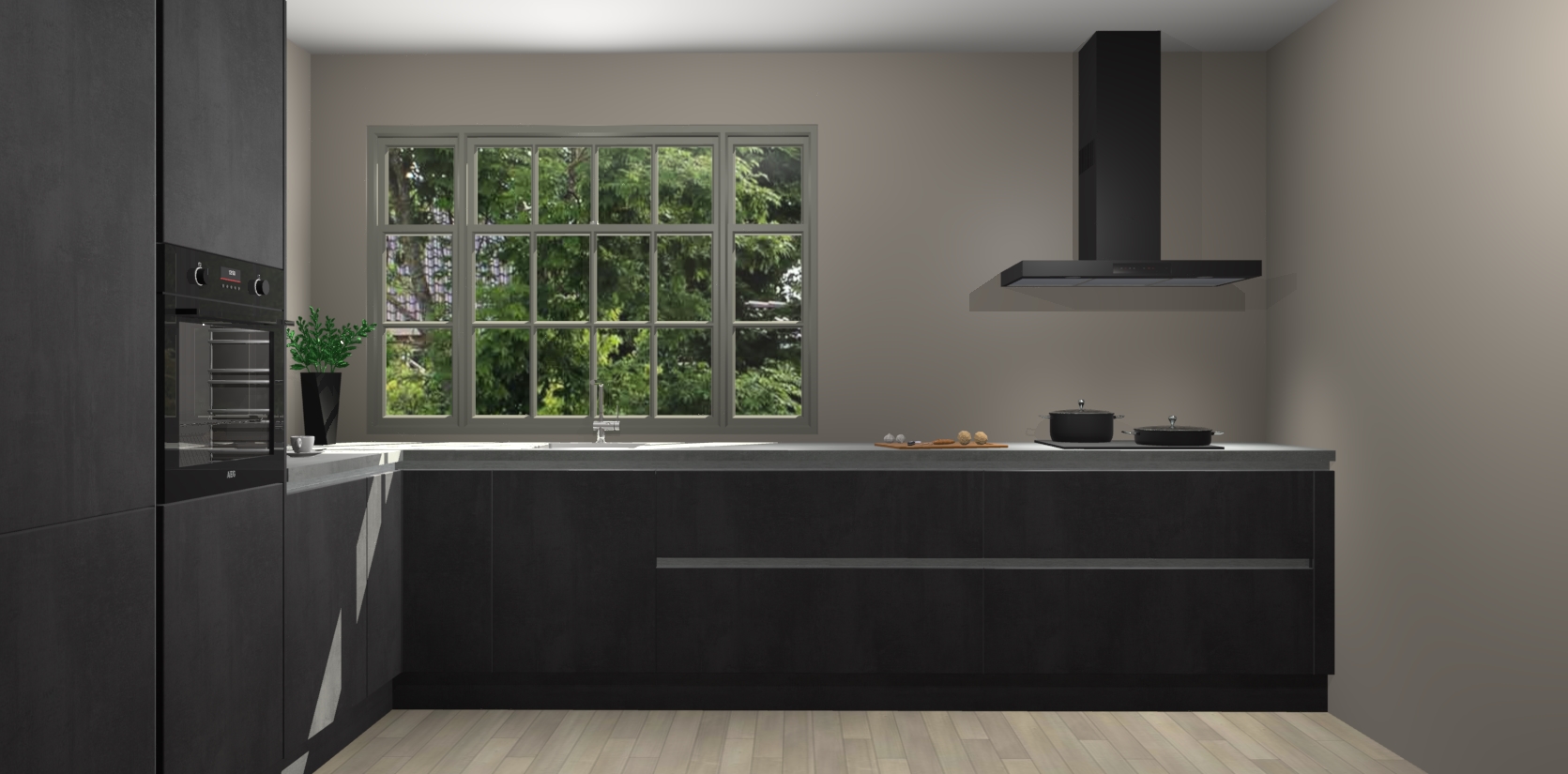 Heeft u nog apparatuur nodig? Geen probleem: de Beton Zwarte greeploze keuken Malaga bevat vijf ingebouwde apparaten - een oven, inductiekookplaat, afzuigkap, vaatwasser en koelkast - die gemakkelijk kunnen worden bijgewerkt naar AEG na bestelling. En als dat nog niet genoeg is; onze kasten worden pre-geassembleerd geleverd en zijn verkrijgbaar tegen een vastgeroeste lage prijs! U hoeft nooit meer te zoeken naar goede kwaliteit en service want onze producten hebben echt Duitse kwaliteit.