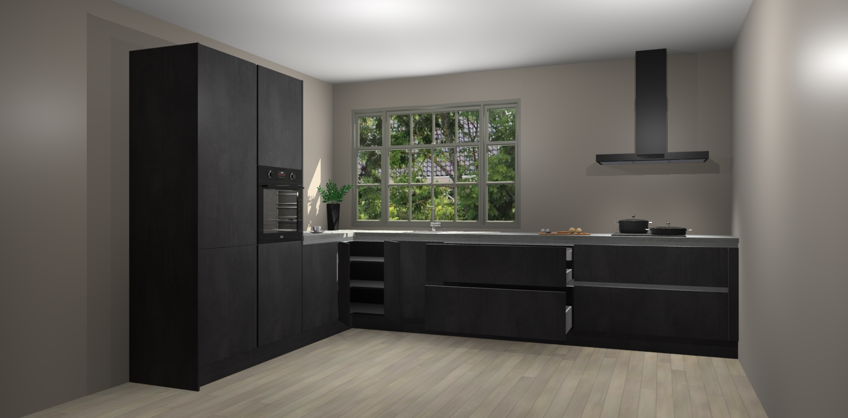 Bestelling plaatst u zoals u bij al die andere bestellingen: met één druk op de knop! Onze fantastische levertijden van slechts 7 weken betekent wat minder tijd wachten en veel meer tijd winnen om met uw gezin te spenderen. Kom eindelijk dichterbij die ultieme droomkeukens ervaring vandaag met Beton Zwarte greeploze keuken Malaga. We beloven dat uw gezinsleven nooit meer hetzelfde zal zijn!