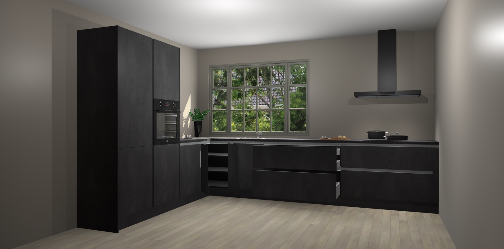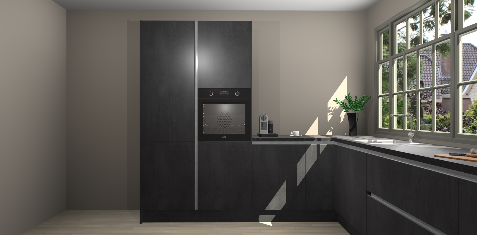 Heeft u nog apparatuur nodig? Geen probleem: de Beton Zwarte greeploze keuken Malaga bevat vijf ingebouwde apparaten - een oven, inductiekookplaat, afzuigkap, vaatwasser en koelkast - die gemakkelijk kunnen worden bijgewerkt naar AEG na bestelling. En als dat nog niet genoeg is; onze kasten worden pre-geassembleerd geleverd en zijn verkrijgbaar tegen een vastgeroeste lage prijs! U hoeft nooit meer te zoeken naar goede kwaliteit en service want onze producten hebben echt Duitse kwaliteit.