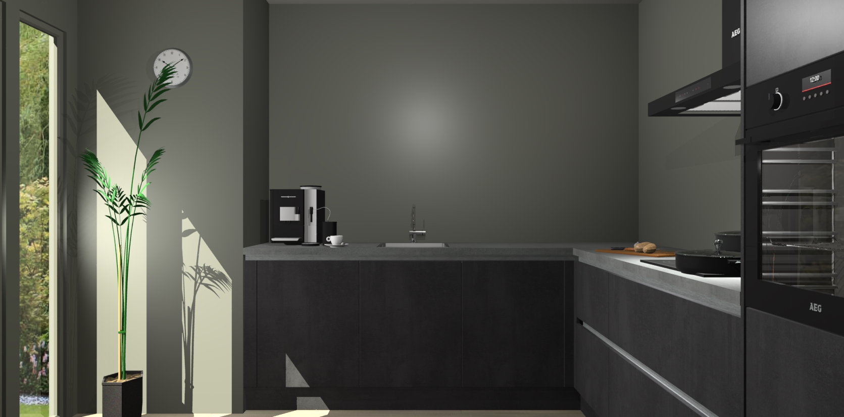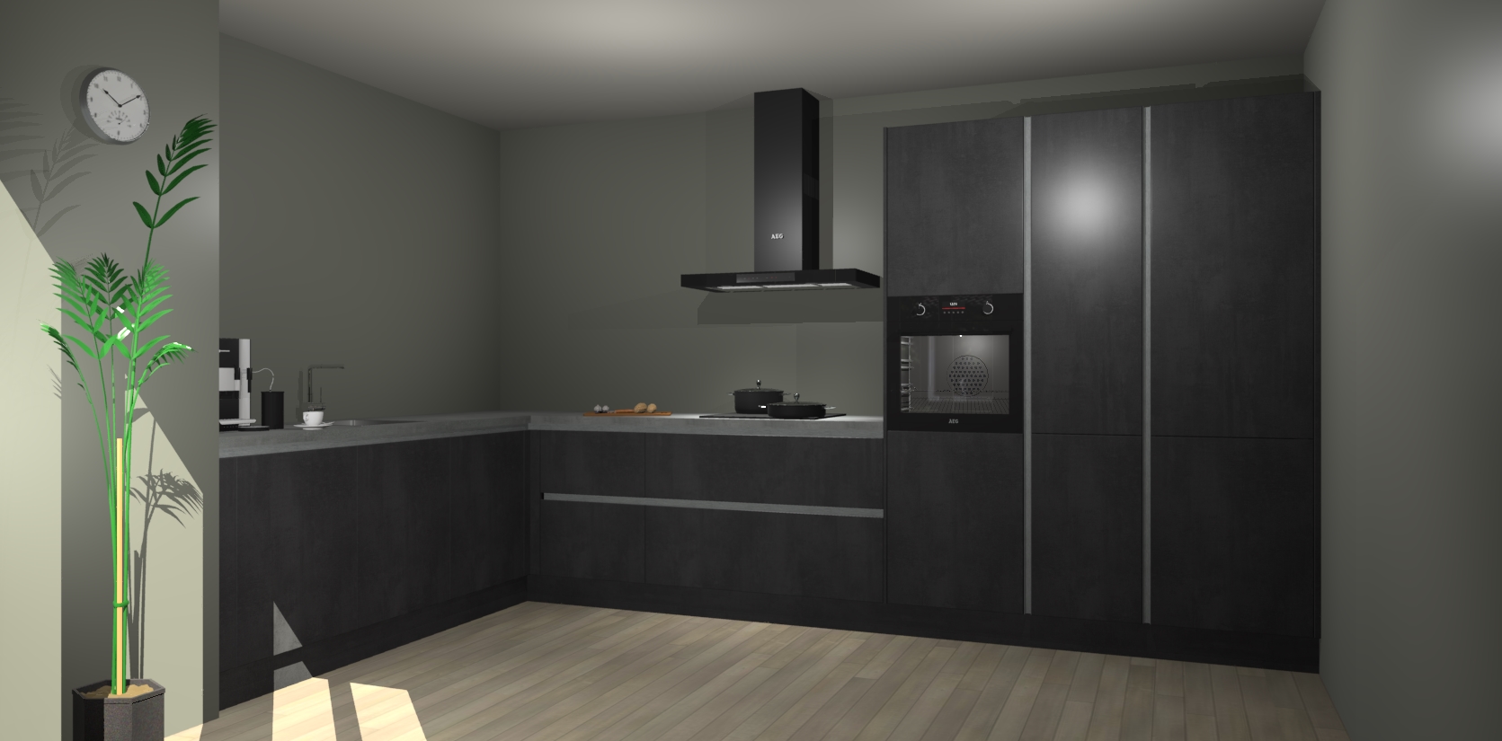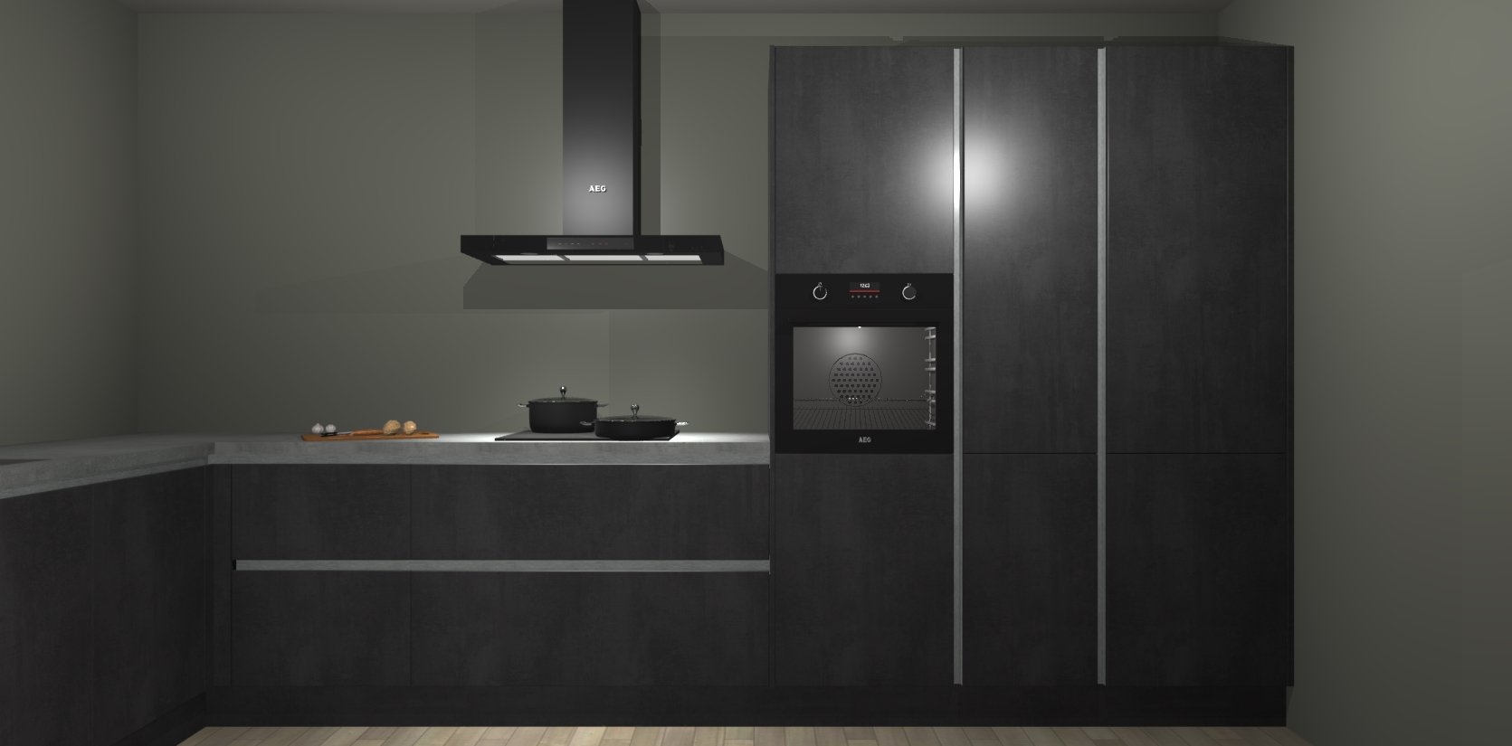 Welkom bij de beton zwarte greeploze keuken Nuuk. Deze prachtige keuken zal de komende jaren het middelpunt van de belangstelling in uw huis zijn. Uitgerust met vijf inbouwapparaten komt u nooit kookgereedschap tekort.