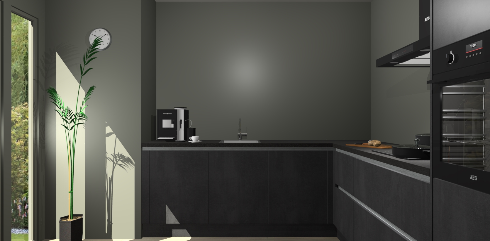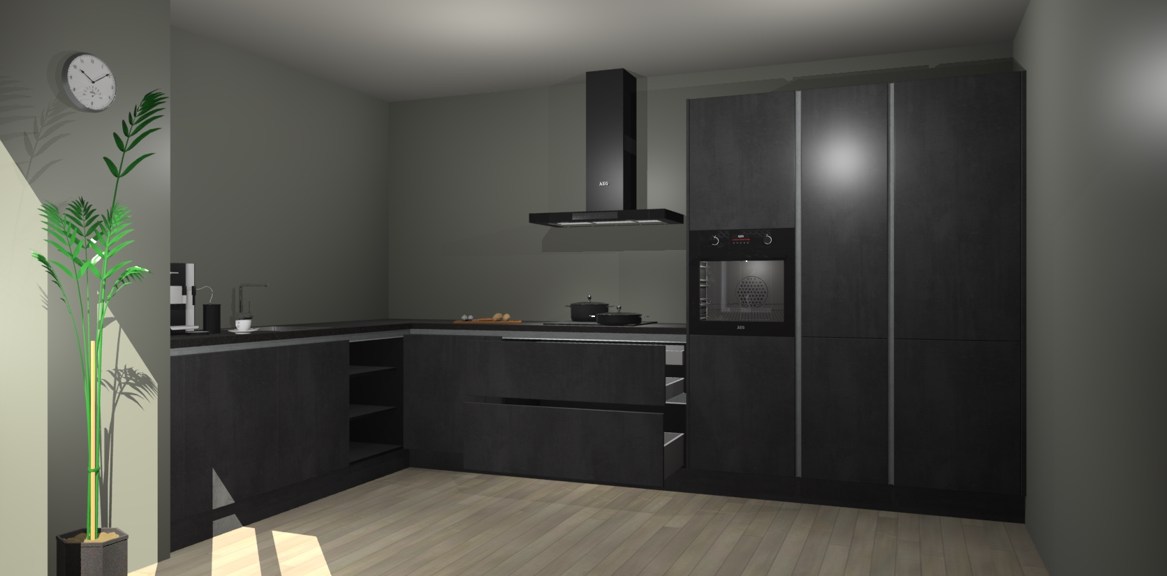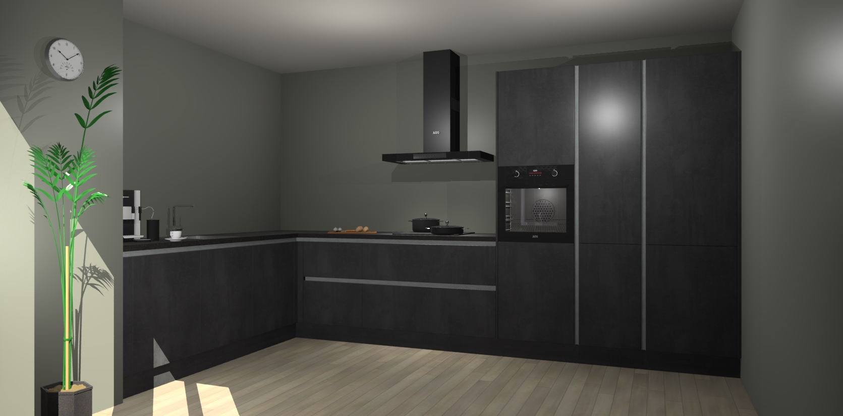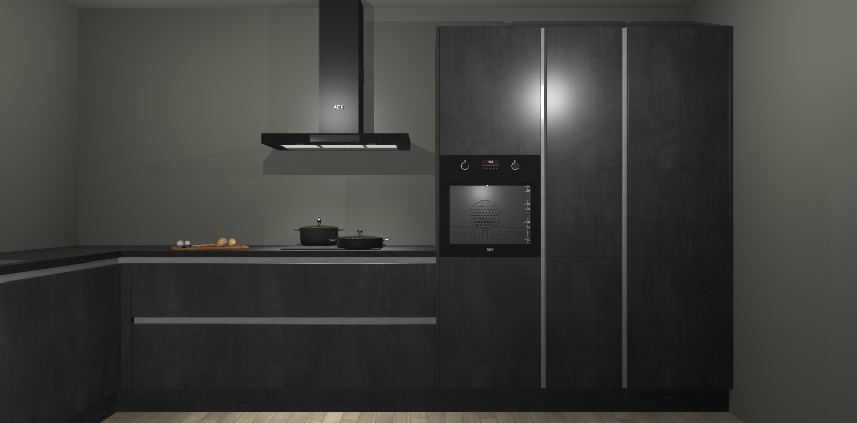 Welkom bij de beton zwarte greeploze keuken Nuuk. Deze prachtige keuken zal de komende jaren het middelpunt van de belangstelling in uw huis zijn. Uitgerust met vijf inbouwapparaten komt u nooit kookgereedschap tekort.