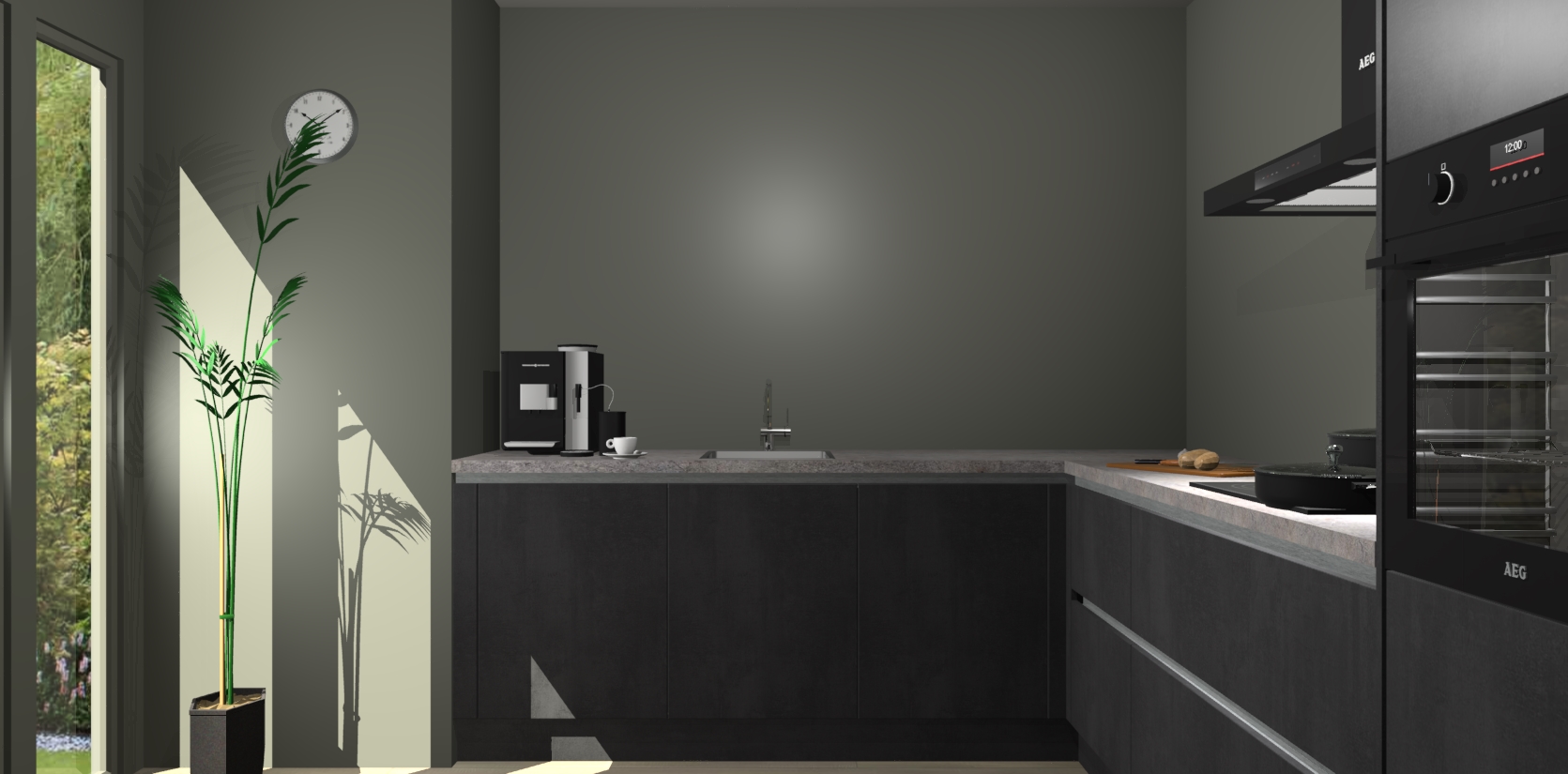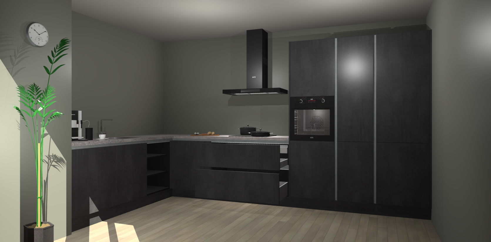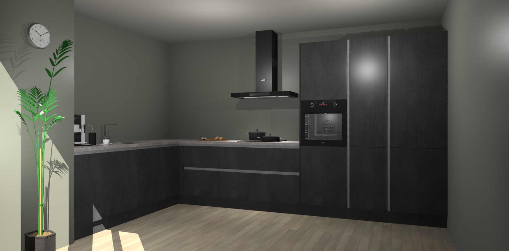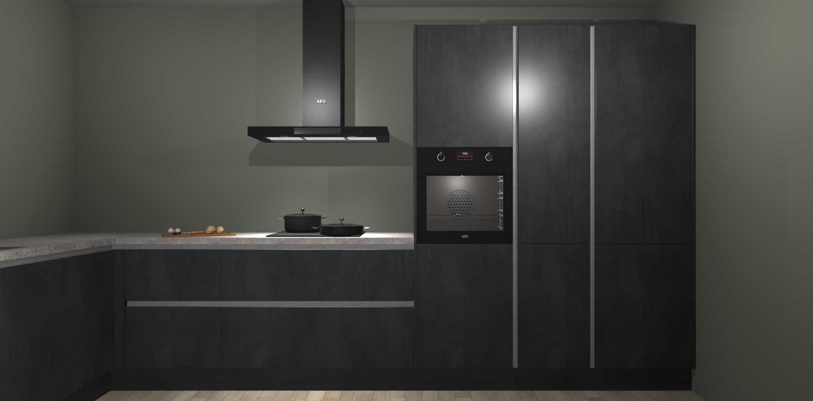 Welkom bij de beton zwarte greeploze keuken Nuuk. Deze prachtige keuken zal de komende jaren het middelpunt van de belangstelling in uw huis zijn. Uitgerust met vijf inbouwapparaten komt u nooit kookgereedschap tekort.