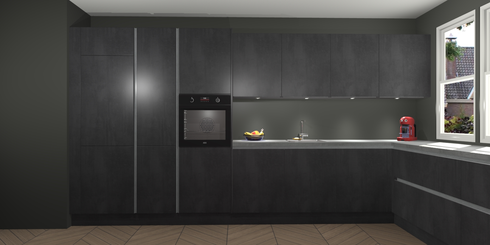 Beton Zwarte greeploze keuken Opole zal u de adem benemen met zijn moderne en strakke look!