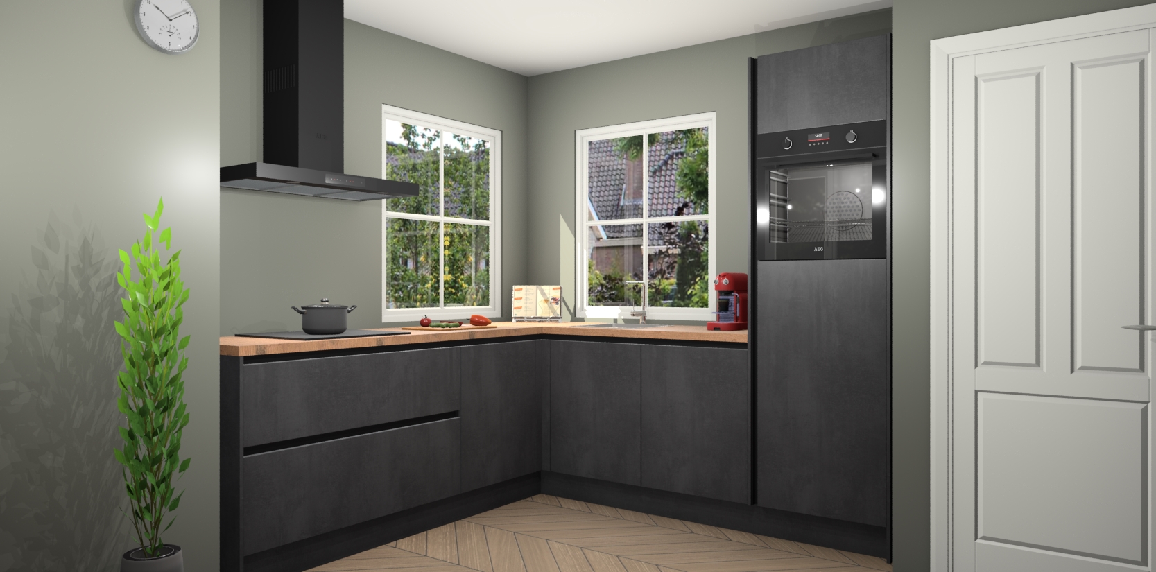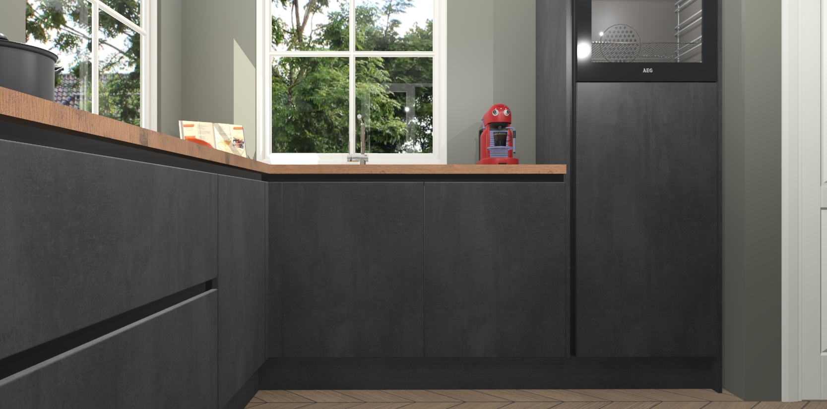 De Beton Zwarte greeploze keuken Pai bevat vijf essentiële inbouwapparaten - een oven, inductiekookplaat, afzuigkap, vaatwasser en koelkast - zodat u er na levering meteen in kunt. Voor de slimme kopers die weten dat apparaten vaak het verschil kunnen maken tussen functioneel en luxueus, bieden we eenvoudige upgradeopties naar AEG, van oven naar combimagnetron na bestelling of naar een kookplaat met geïntrigeerde afzuiging. En met onze vaste lage prijs en snelle levering binnen zeven weken vanaf de orderbevestiging hoeft u zich geen zorgen te maken over verborgen kosten of lange levertijden die uw droomkeuken kunnen vertragen.