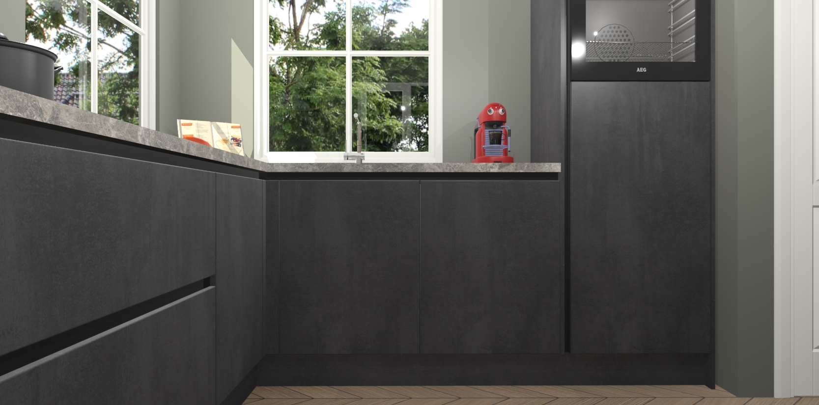 De Beton Zwarte greeploze keuken Pai bevat vijf essentiële inbouwapparaten - een oven, inductiekookplaat, afzuigkap, vaatwasser en koelkast - zodat u er na levering meteen in kunt. Voor de slimme kopers die weten dat apparaten vaak het verschil kunnen maken tussen functioneel en luxueus, bieden we eenvoudige upgradeopties naar AEG, van oven naar combimagnetron na bestelling of naar een kookplaat met geïntrigeerde afzuiging. En met onze vaste lage prijs en snelle levering binnen zeven weken vanaf de orderbevestiging hoeft u zich geen zorgen te maken over verborgen kosten of lange levertijden die uw droomkeuken kunnen vertragen.