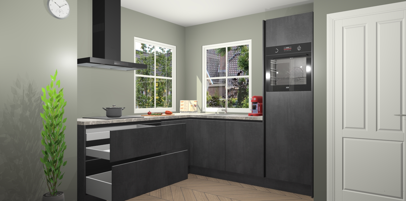 U krijgt niet alleen een prachtige hoekkeuken voor een onklopbare prijs - met details zoals soft close deuren om uw zintuigen te verwennen - maar u investeert ook in vakmanschap dat lang meegaat. Met zijn afgeronde randen is elk stuk met precisie en passie ontworpen om elegantie in uw ruimte te brengen. Eenvoudigweg gastvrijheid delen met familie en vrienden wordt mogelijk met de Beton Zwarte greeploze keuken Pai! Elegant design gecombineerd met hoogwaardige materialen en een betaalbaar prijskaartje maken deze hoekkeuken de perfecte keuze voor slimme huiseigenaren die op zoek zijn naar een superieure stijl die de tand des tijds zal doorstaan. Wacht niet: bestel uw nieuwe Beton Zwarte greeploze keuken Pai vandaag nog!