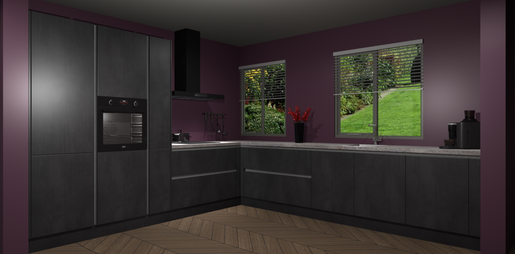 Welkom bij de Beton Zwarte keuken Palermo. Deze prachtige keuken zal de komende jaren het middelpunt van de belangstelling in uw huis zijn. Uitgerust met vijf inbouwapparaten komt u nooit kookgereedschap tekort. Bovendien geeft de warme houtlook elke ruimte een uitnodigende en tijdloze uitstraling.
