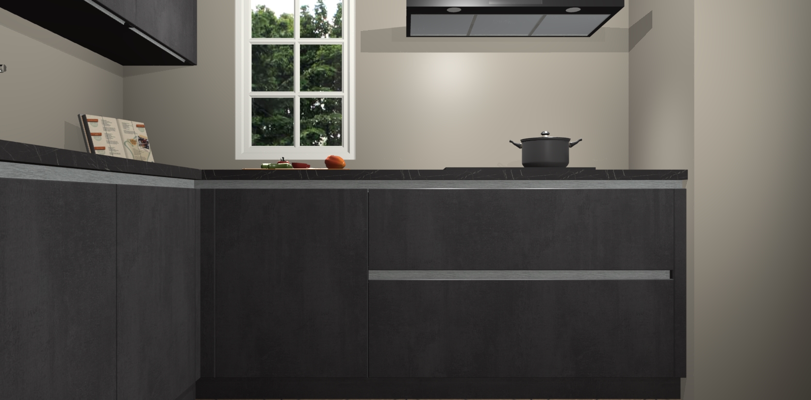 Wij presenteren de revolutie in keukens: de Beton zwarte greeploze keuken Paramaribo. Met modern design, een tijdloos uiterlijk en kasten die al voor gemonteerd worden geleverd, laat deze stijlvolle keuken uw kookervaring op een hele nieuwe manier transformeren.