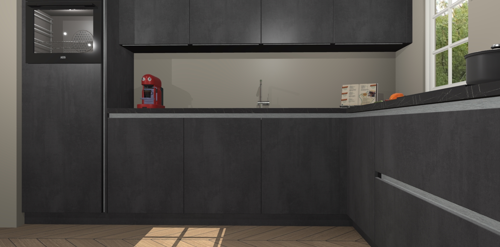 Met een modern, tijdloos design en ruime opslagruimte, zult u zich in no-time thuis voelen in uw nieuwe keuken. Uw leven wordt eenvoudiger met de soft-close deuren die voor het ultieme stille comfort zorgen - geen geluid dat u stoort terwijl u kookt. Ook is de keuken voorzien van 5 ingebouwde apparaten: een oven, inductie kookplaat, afzuigkap, vaatwasser en koelkast. Deze kunnen gemakkelijk na bestelling worden bijgewerkt naar AEG - waardoor uw luxe ervaring compleet is.