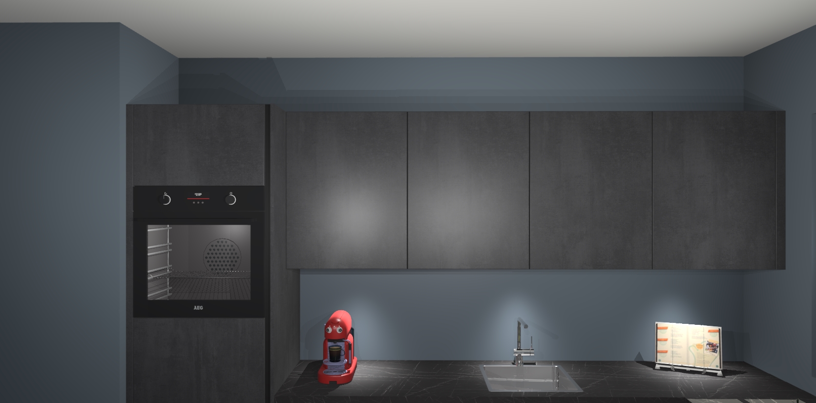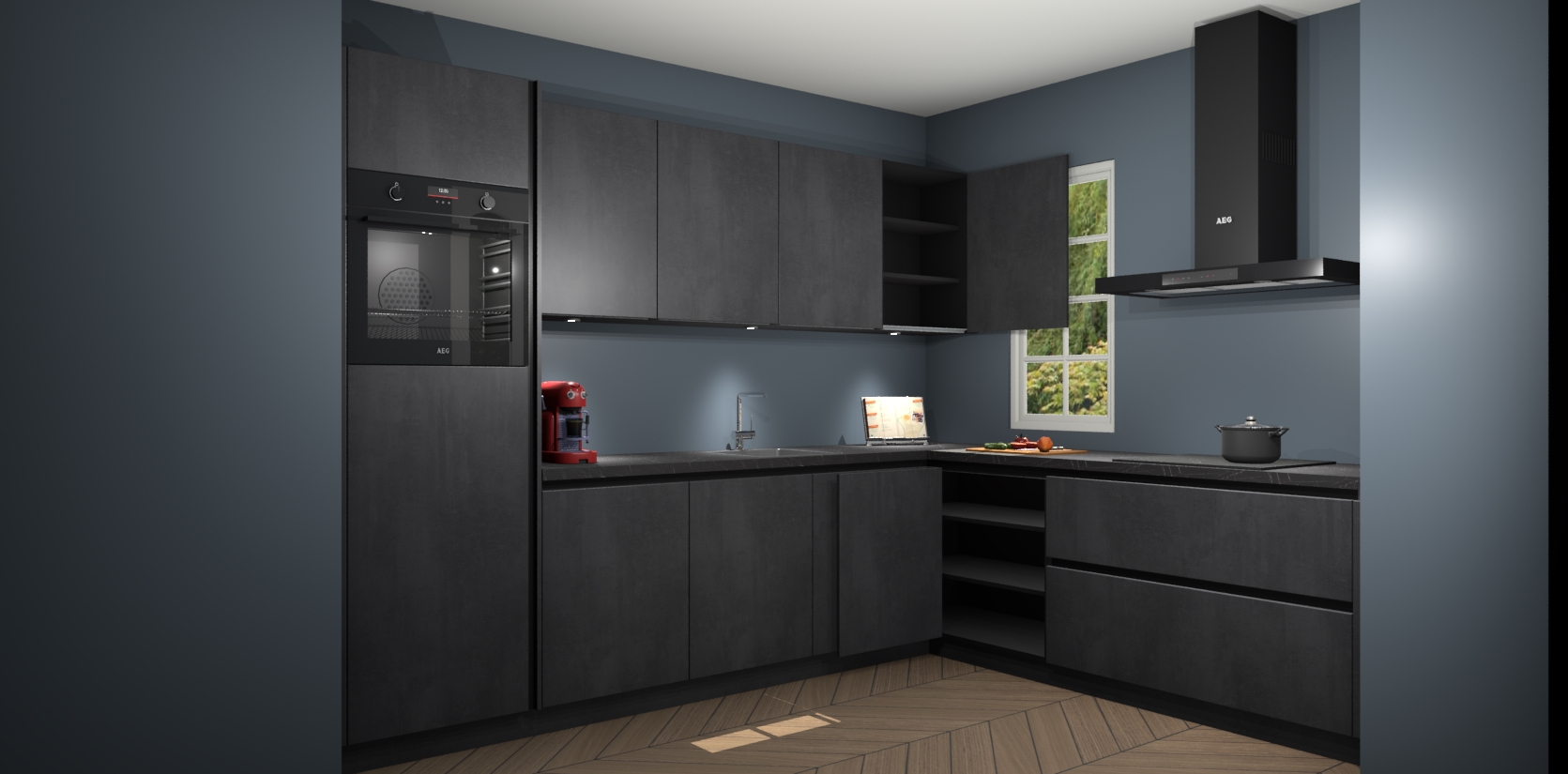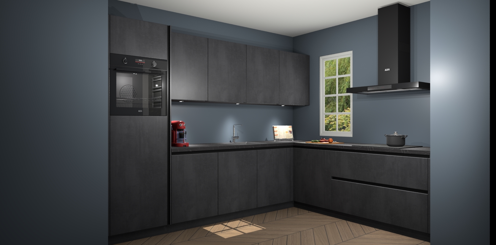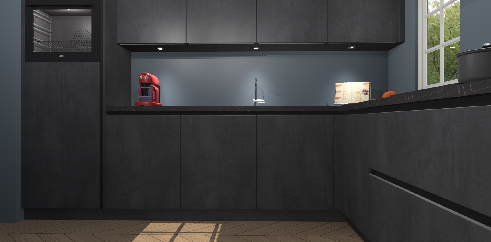 Met een modern, tijdloos design en ruime opslagruimte, zult u zich in no-time thuis voelen in uw nieuwe keuken. Uw leven wordt eenvoudiger met de soft-close deuren die voor het ultieme stille comfort zorgen - geen geluid dat u stoort terwijl u kookt. Ook is de keuken voorzien van 5 ingebouwde apparaten: een oven, inductie kookplaat, afzuigkap, vaatwasser en koelkast. Deze kunnen gemakkelijk na bestelling worden bijgewerkt naar AEG - waardoor uw luxe ervaring compleet is.