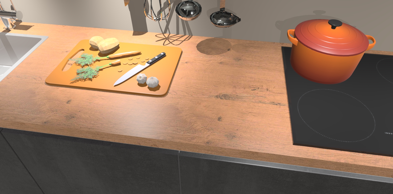 - Uitsparing van kookplaat, spoelbak en kraan dient u zelf te verzorgen.
