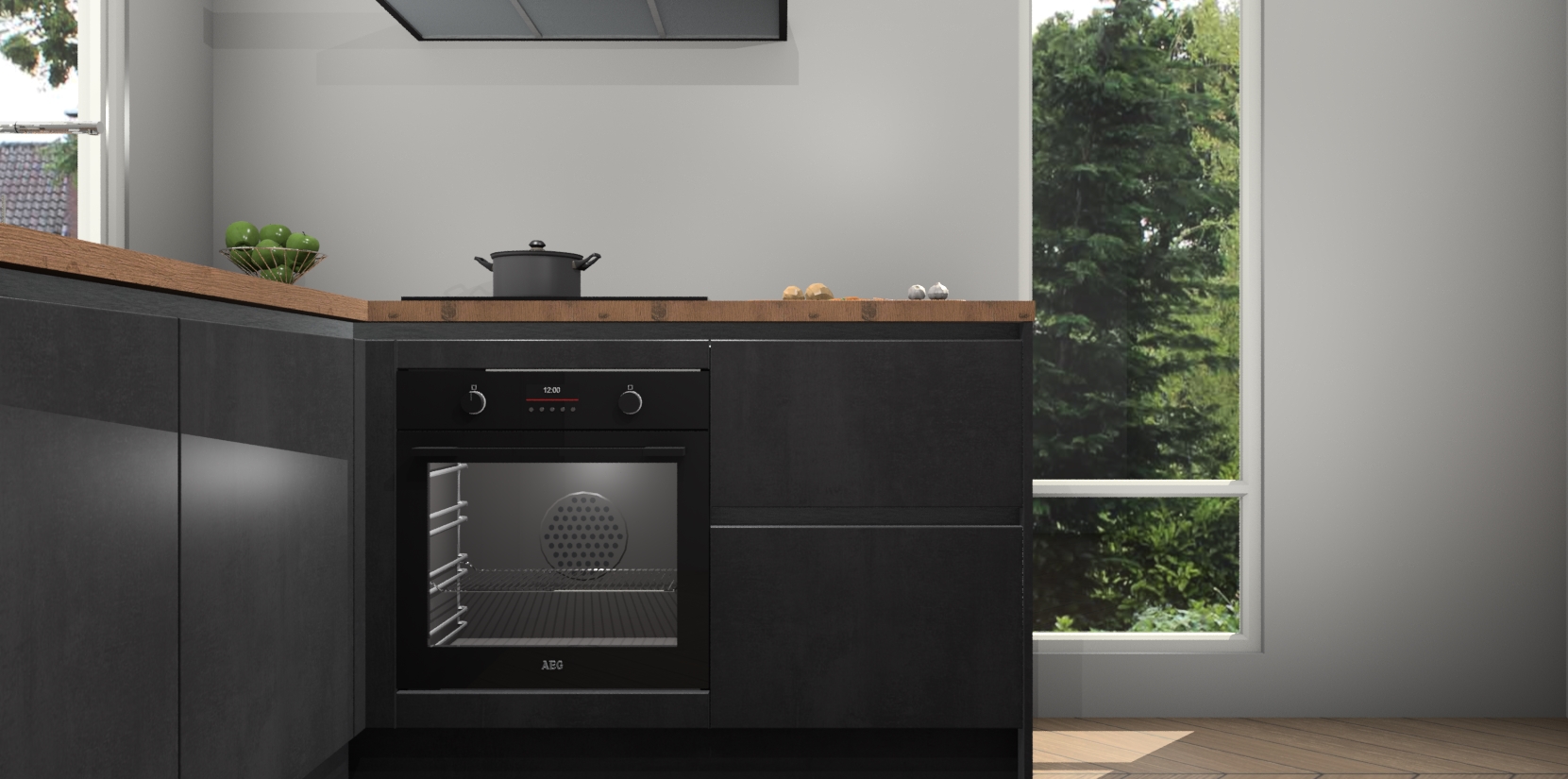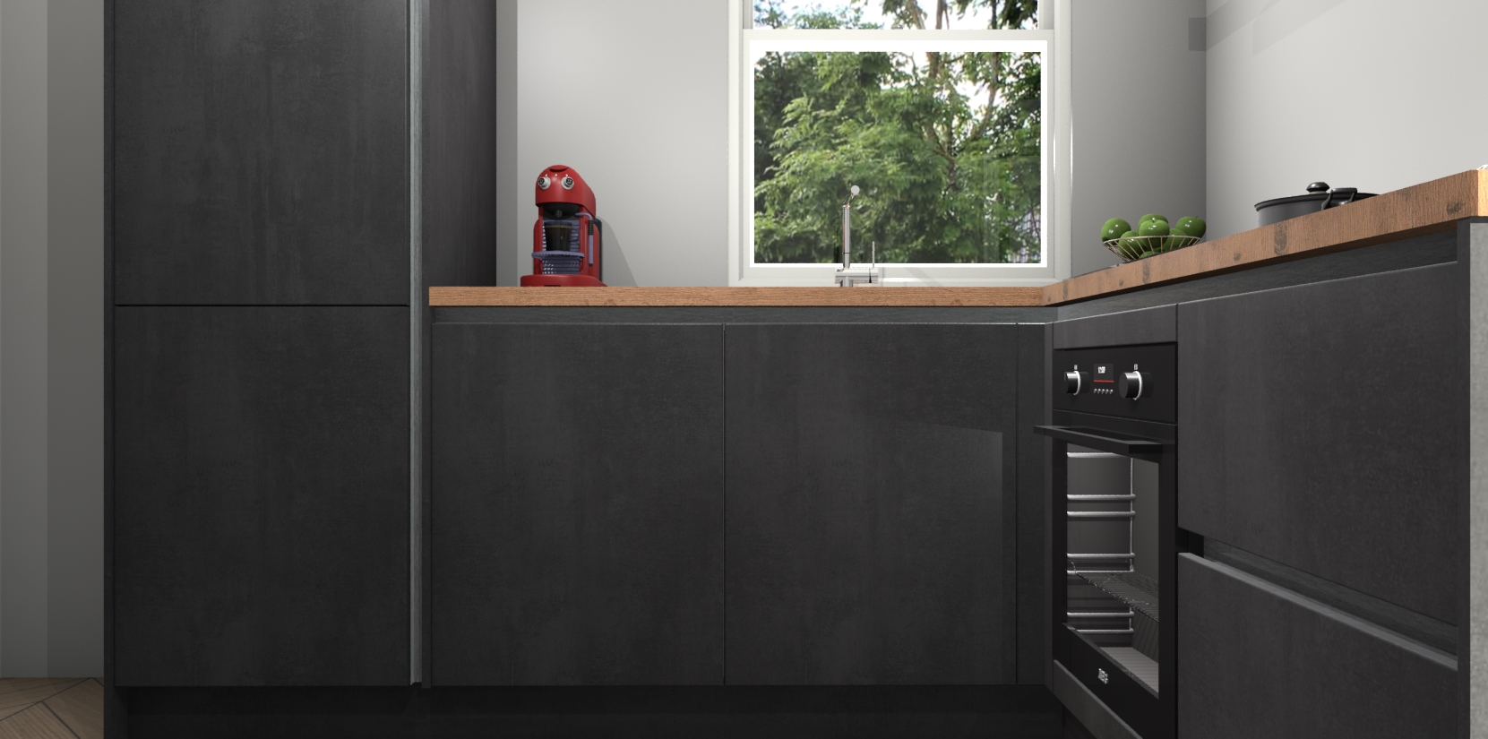 De Beton Zwarte greeploze keuken Phuket heeft alles wat u maar kunt wensen. Niet alleen zijn er softclose deuren, maar ook 5 ingebouwde apparaten: een oven, inductiekookplaat, afzuigkap, vaatwasser en koelkast - waarbij u later gemakkelijk naar het AEG merk, van inductiekookplaat naar kookplaat met geïntegreerde afzuiging of van oven naar combimagnetron kunt upgraden. Dat alles tegen een vast laag tarief! Bovendien geeft de Beton Zwarte greeploze keuken Phuket supersnelle levering van 7 weken. Echt iets voor u als u er niet op wilt wachten om het resultaat te zien in eigen keuken!