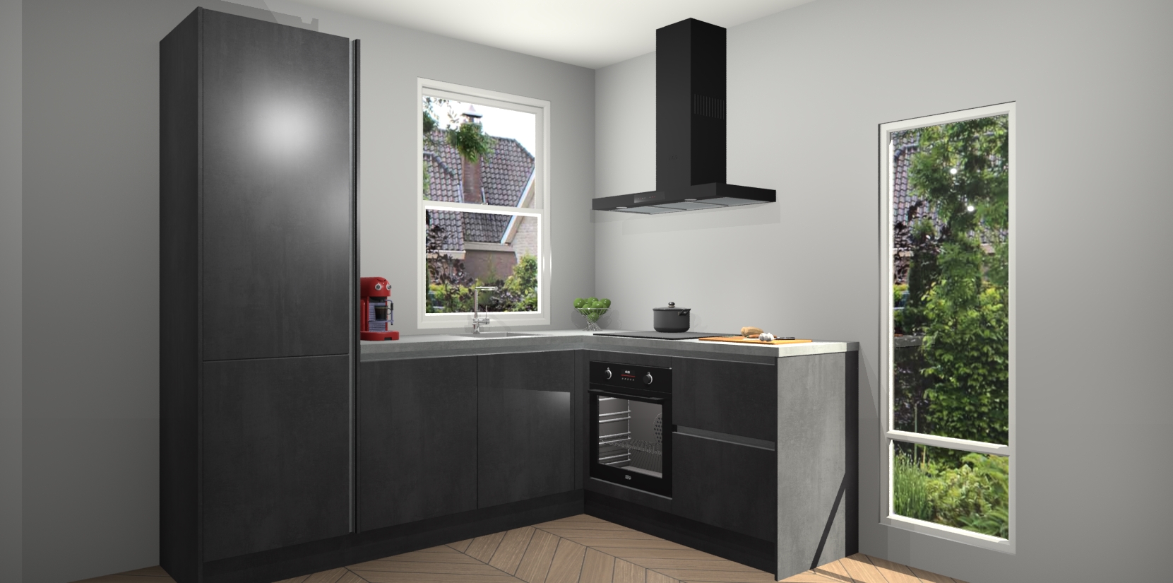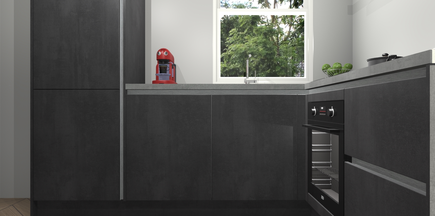 De Beton Zwarte greeploze keuken Phuket heeft alles wat u maar kunt wensen. Niet alleen zijn er softclose deuren, maar ook 5 ingebouwde apparaten: een oven, inductiekookplaat, afzuigkap, vaatwasser en koelkast - waarbij u later gemakkelijk naar het AEG merk, van inductiekookplaat naar kookplaat met geïntegreerde afzuiging of van oven naar combimagnetron kunt upgraden. Dat alles tegen een vast laag tarief! Bovendien geeft de Beton Zwarte greeploze keuken Phuket supersnelle levering van 7 weken. Echt iets voor u als u er niet op wilt wachten om het resultaat te zien in eigen keuken!