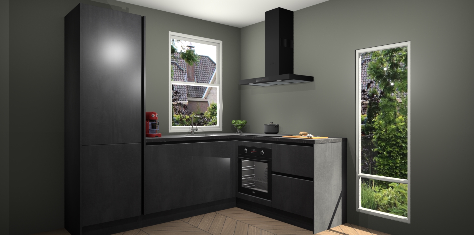 De prachtige Beton Zwarte greeploze keuken Phuket is de perfecte keuze als u op zoek bent naar een moderne hoekkeuken met alle luxe en comfort die u kunt verwachten! De uitstraling in het houtlook-design draagt bij aan de warme sfeer die u nu al voelt wanneer u er naar kijkt. Heeft u genoeg van ouderwetse keukens? Probeer dan direct deze moderne, mooie hoekkeukens en laat iedereen verbluft achter!