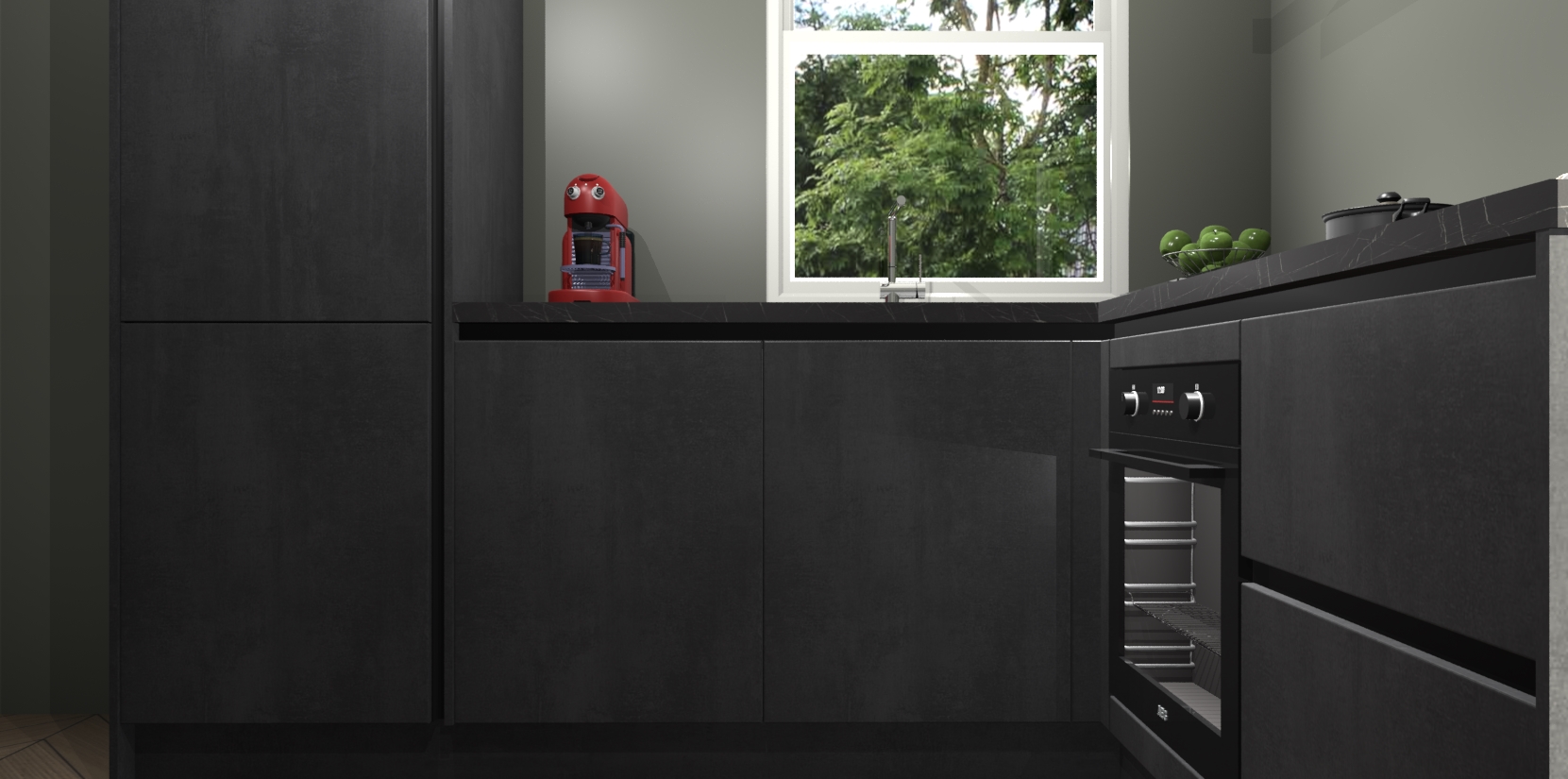 De Beton Zwarte greeploze keuken Phuket heeft alles wat u maar kunt wensen. Niet alleen zijn er softclose deuren, maar ook 5 ingebouwde apparaten: een oven, inductiekookplaat, afzuigkap, vaatwasser en koelkast - waarbij u later gemakkelijk naar het AEG merk, van inductiekookplaat naar kookplaat met geïntegreerde afzuiging of van oven naar combimagnetron kunt upgraden. Dat alles tegen een vast laag tarief! Bovendien geeft de Beton Zwarte greeploze keuken Phuket supersnelle levering van 7 weken. Echt iets voor u als u er niet op wilt wachten om het resultaat te zien in eigen keuken!