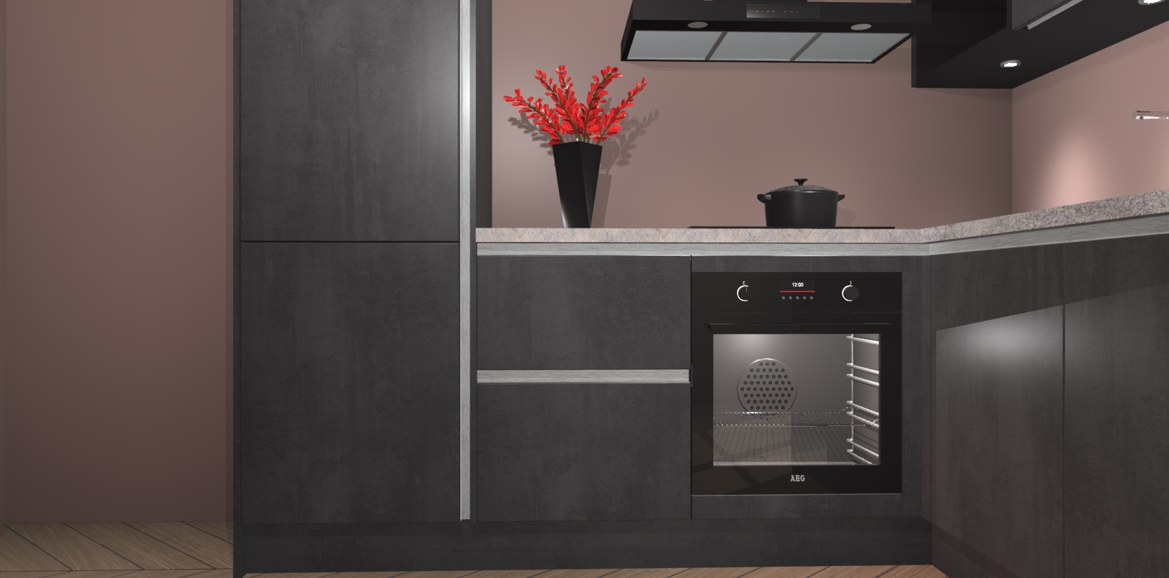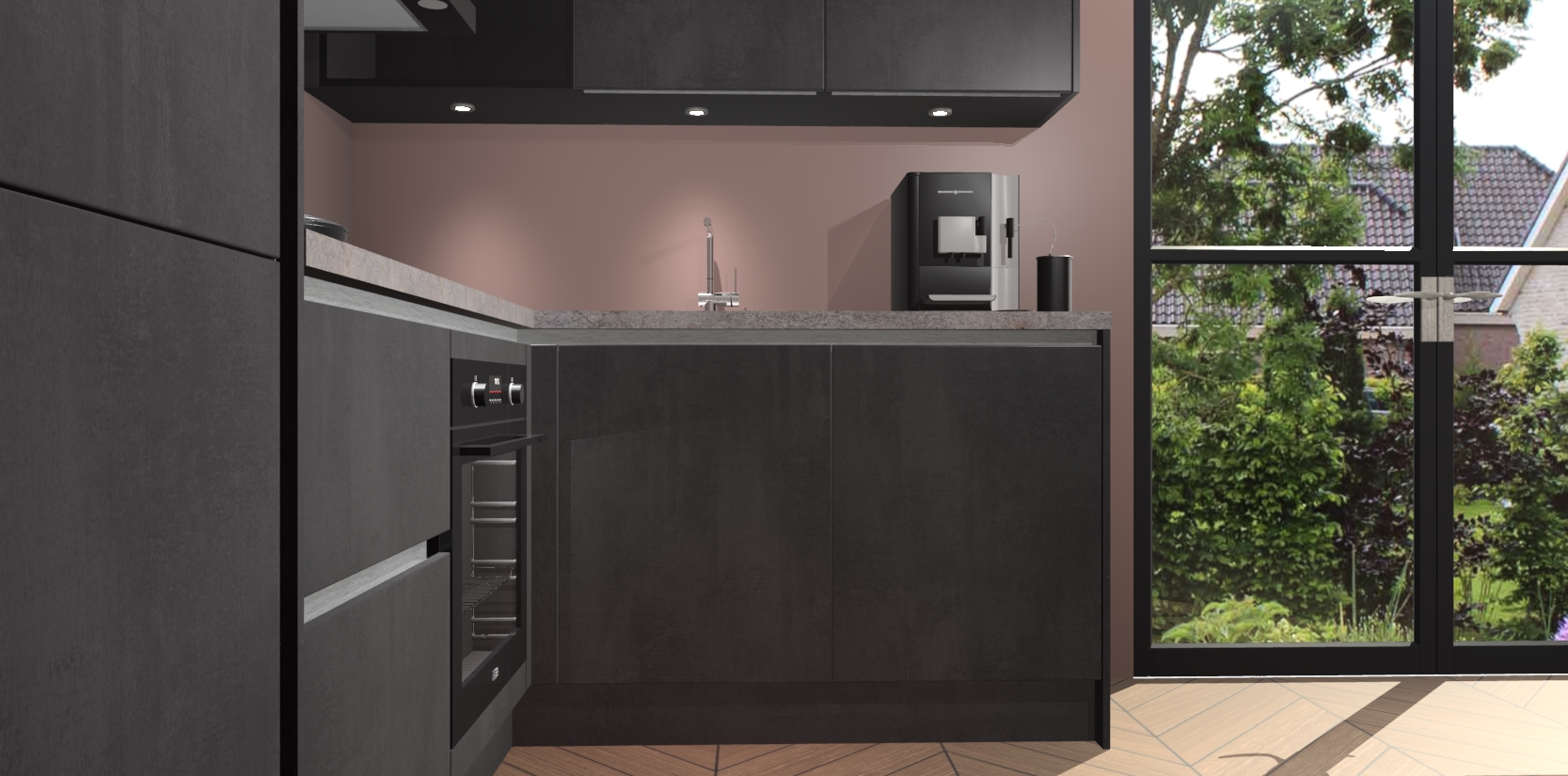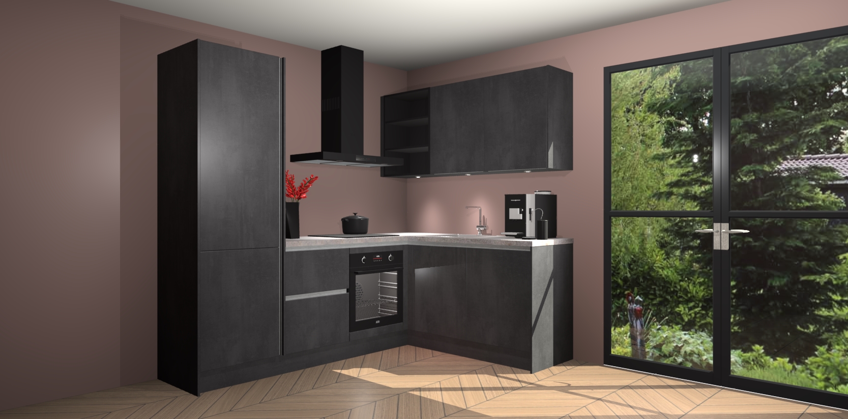 Wauw, dit is de Beton Zwarte greeploze keuken Pilsen! U kunt gerust zeggen dat u elegantie combineert met functionaliteit met deze keuken. Met een modern en chique ontwerp is de keuken precies wat u nodig heeft om uw ruimte te verfraaien. De binnenzijde van de kasten is in dezelfde donkere kleur als de buitenzijde voor een uniforme look, compleet met softclose-kasten die stil sluiten.