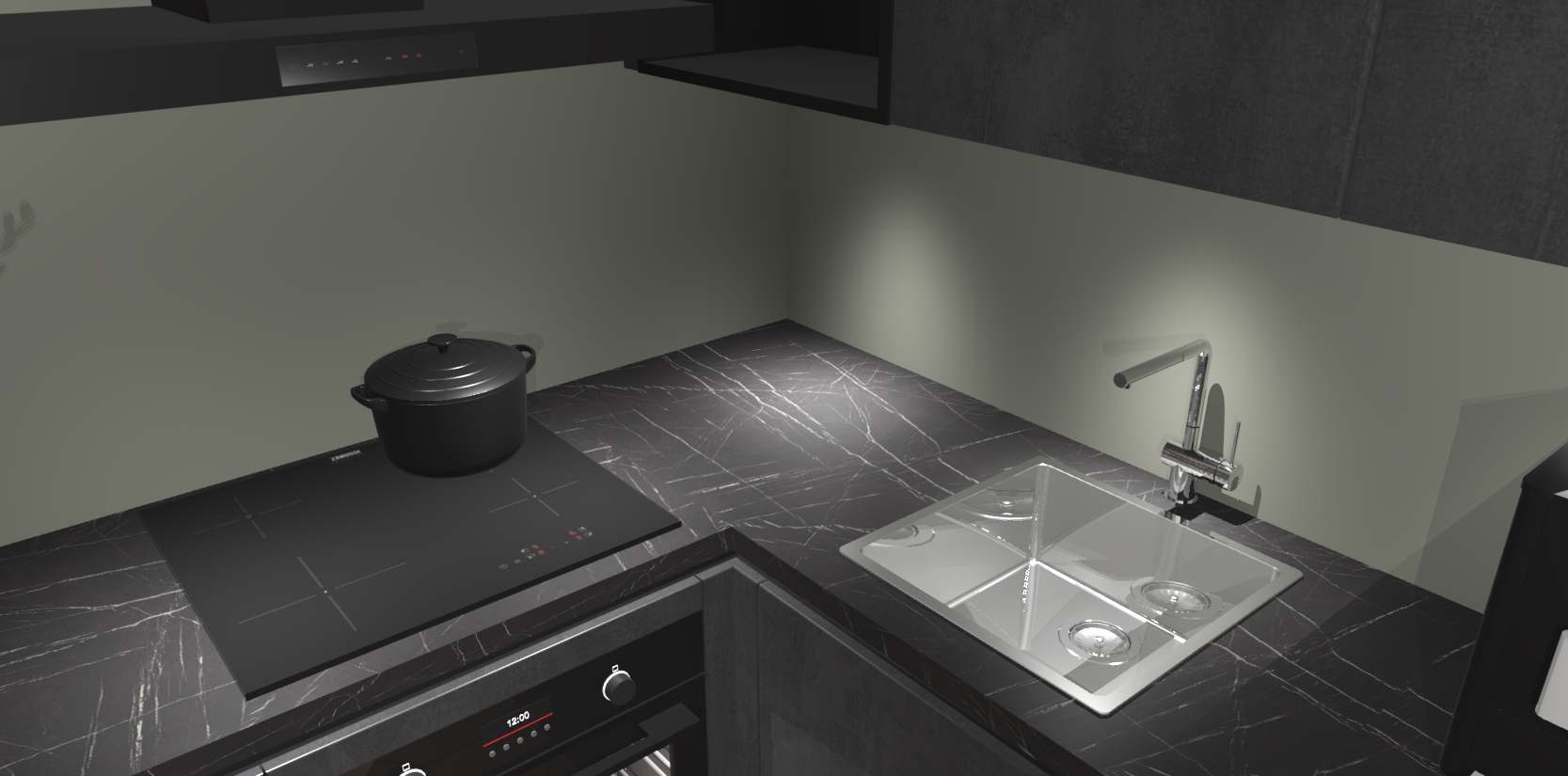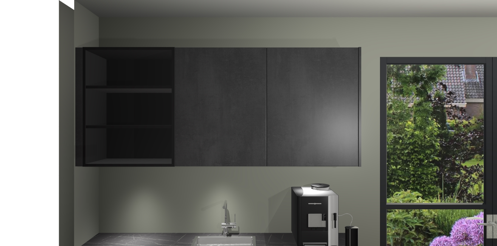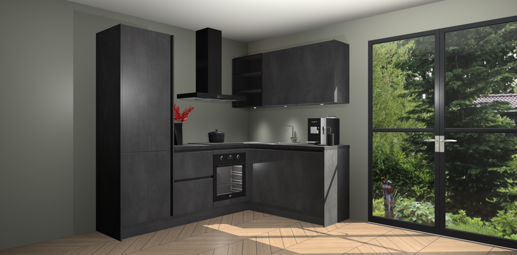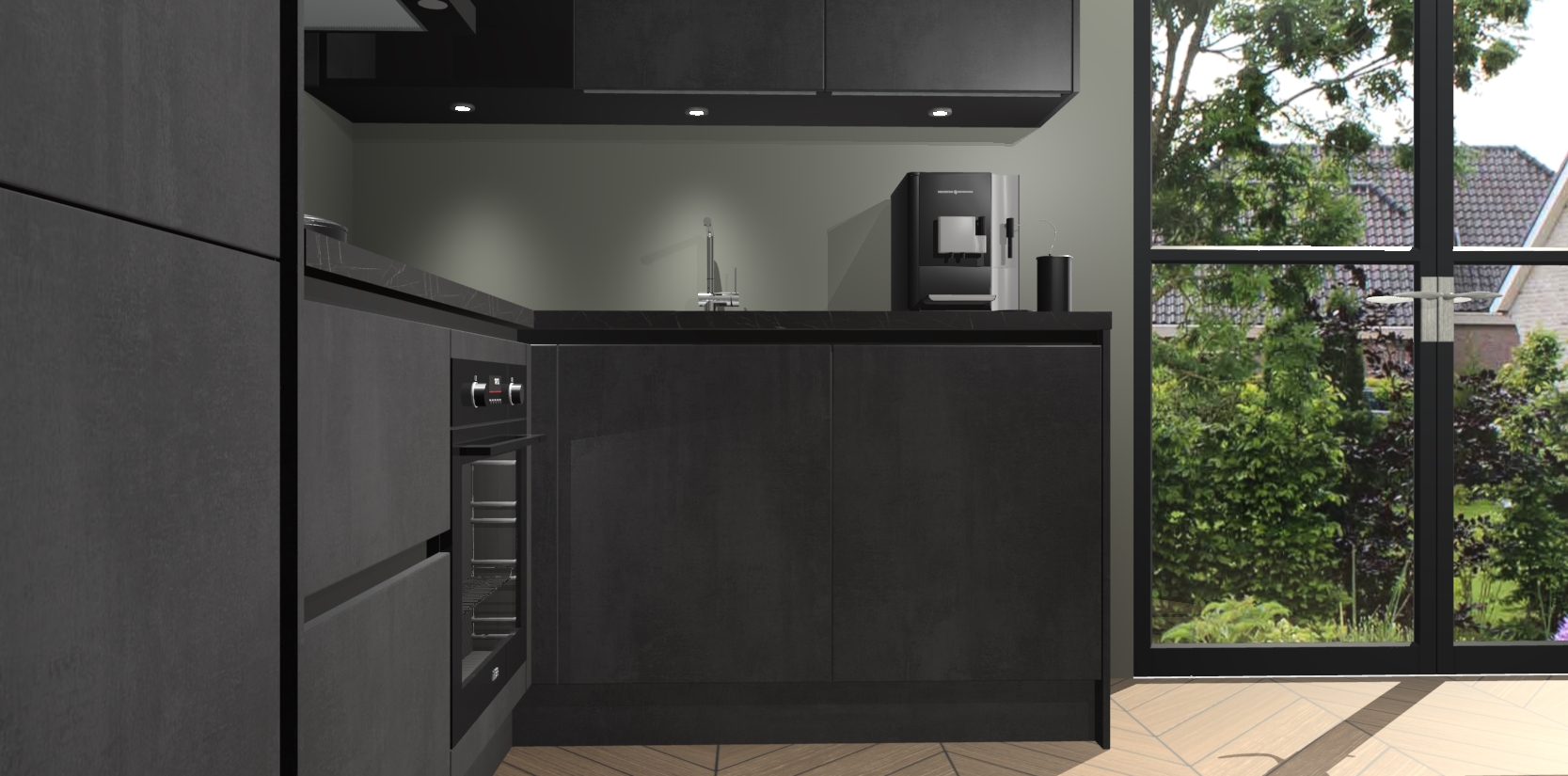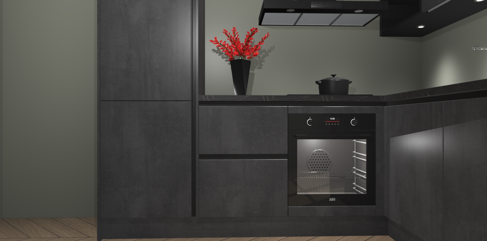 Wauw, dit is de Beton Zwarte greeploze keuken Pilsen! U kunt gerust zeggen dat u elegantie combineert met functionaliteit met deze keuken. Met een modern en chique ontwerp is de keuken precies wat u nodig heeft om uw ruimte te verfraaien. De binnenzijde van de kasten is in dezelfde donkere kleur als de buitenzijde voor een uniforme look, compleet met softclose-kasten die stil sluiten.
