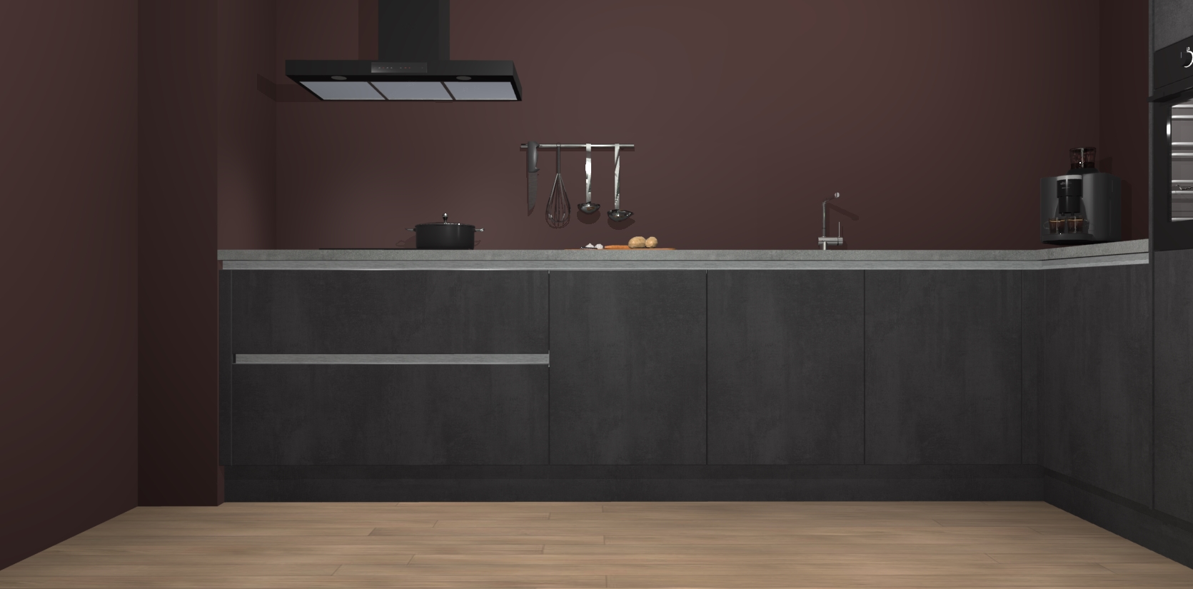 Welkom bij de Beton Zwarte greeploze keuken Portland. Deze prachtige keuken zal de komende jaren het middelpunt van de belangstelling in uw huis zijn. Uitgerust met vijf inbouwapparaten komt u nooit kookgereedschap tekort. Bovendien geeft de warme houtlook elke ruimte een uitnodigende en tijdloze uitstraling.