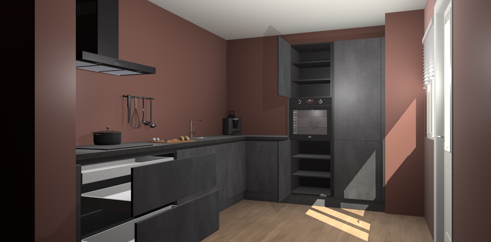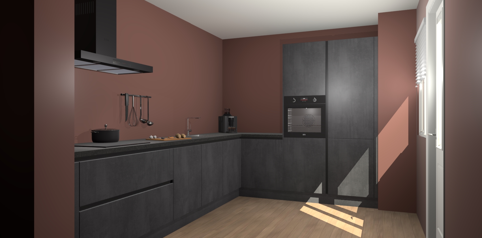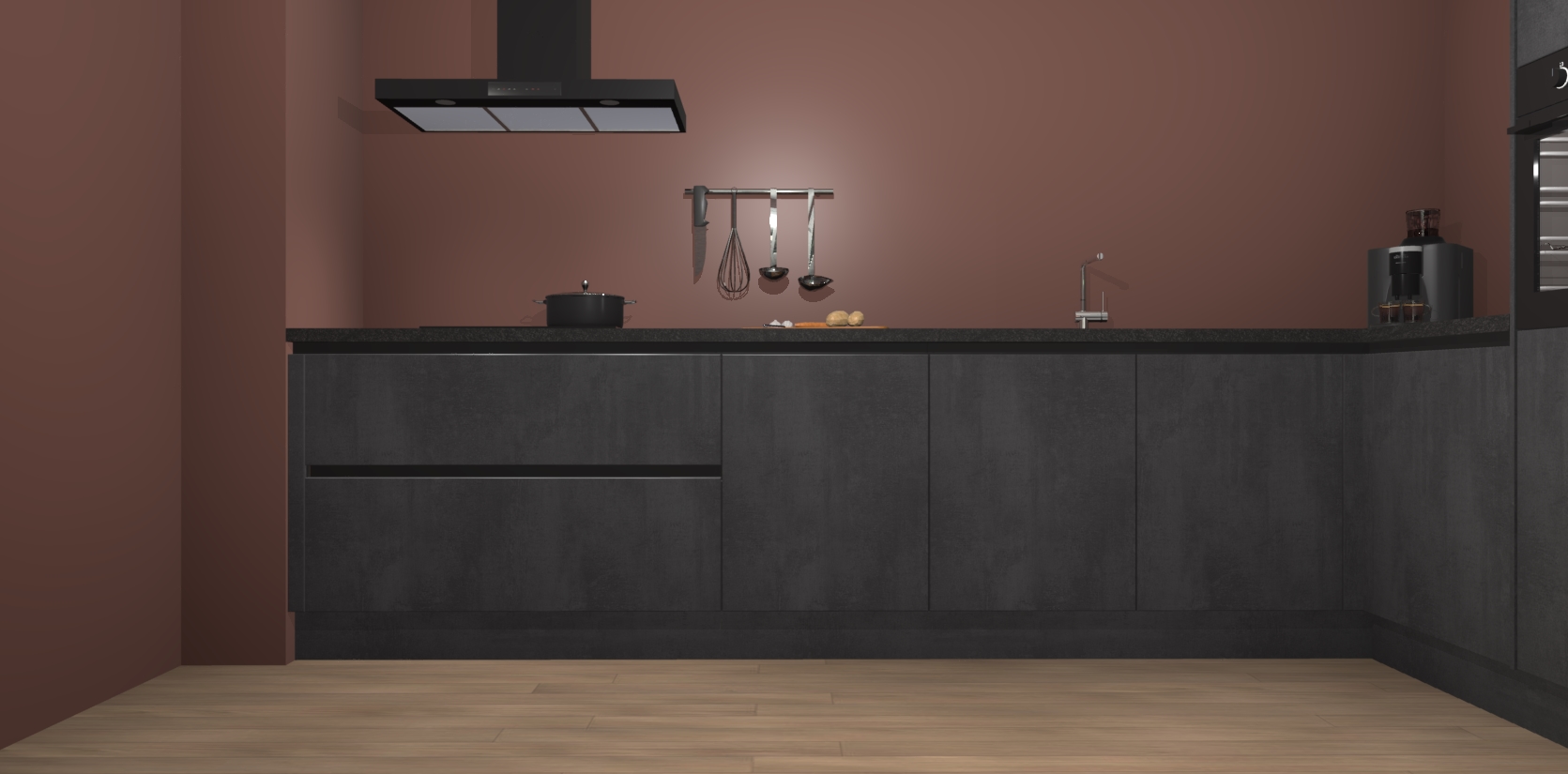 Welkom bij de Beton Zwarte greeploze keuken Portland. Deze prachtige keuken zal de komende jaren het middelpunt van de belangstelling in uw huis zijn. Uitgerust met vijf inbouwapparaten komt u nooit kookgereedschap tekort. Bovendien geeft de warme houtlook elke ruimte een uitnodigende en tijdloze uitstraling.