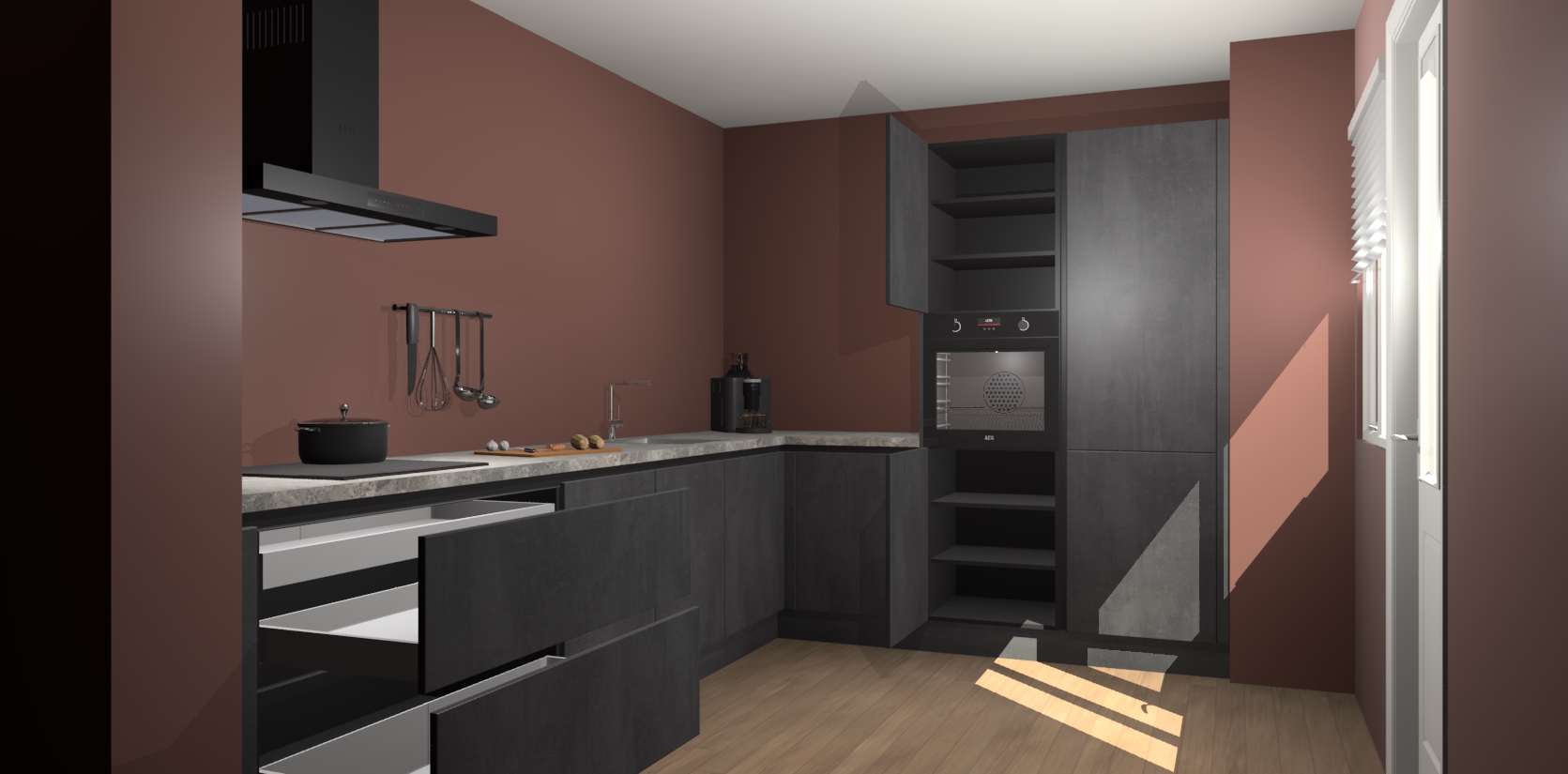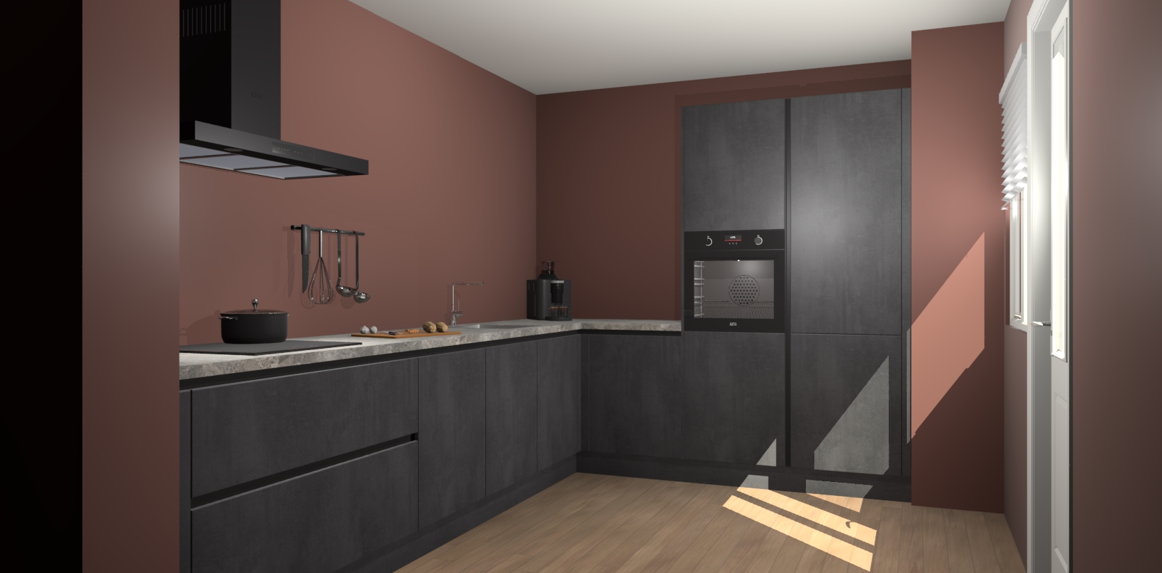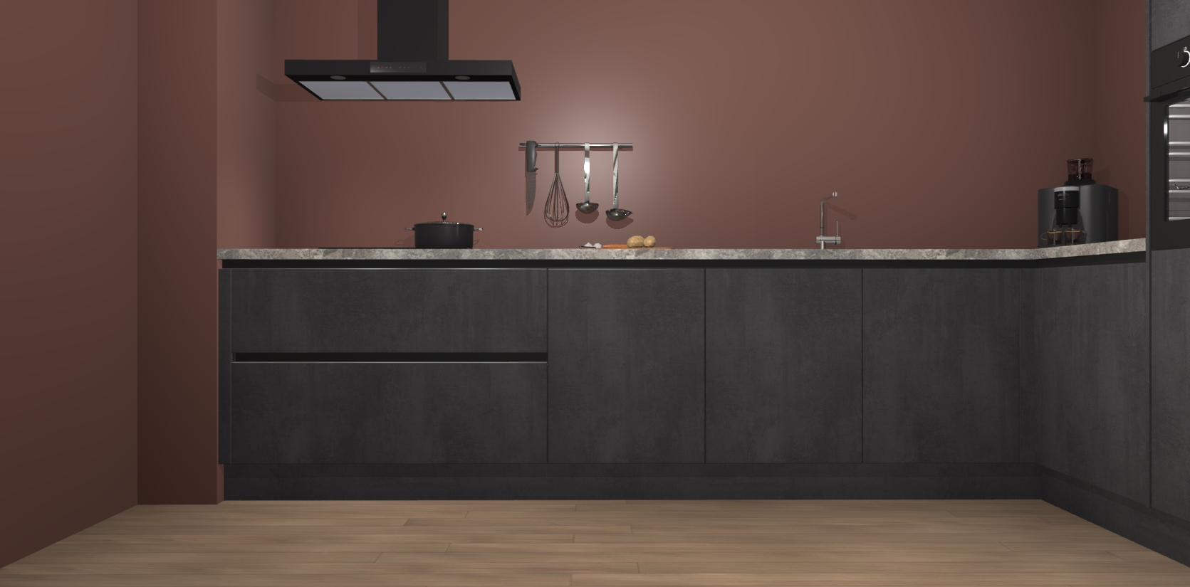 Welkom bij de Beton Zwarte greeploze keuken Portland. Deze prachtige keuken zal de komende jaren het middelpunt van de belangstelling in uw huis zijn. Uitgerust met vijf inbouwapparaten komt u nooit kookgereedschap tekort. Bovendien geeft de warme houtlook elke ruimte een uitnodigende en tijdloze uitstraling.