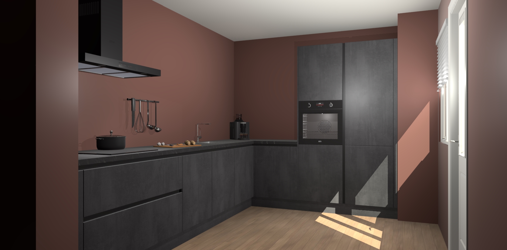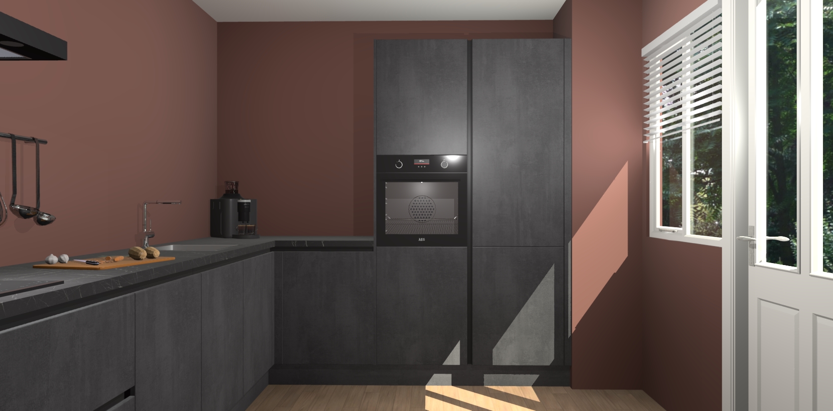 Welkom bij de Beton Zwarte greeploze keuken Portland. Deze prachtige keuken zal de komende jaren het middelpunt van de belangstelling in uw huis zijn. Uitgerust met vijf inbouwapparaten komt u nooit kookgereedschap tekort. Bovendien geeft de warme houtlook elke ruimte een uitnodigende en tijdloze uitstraling.