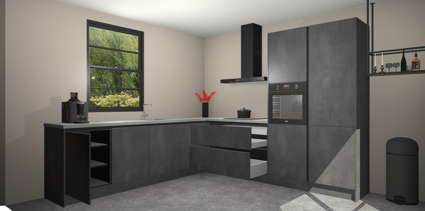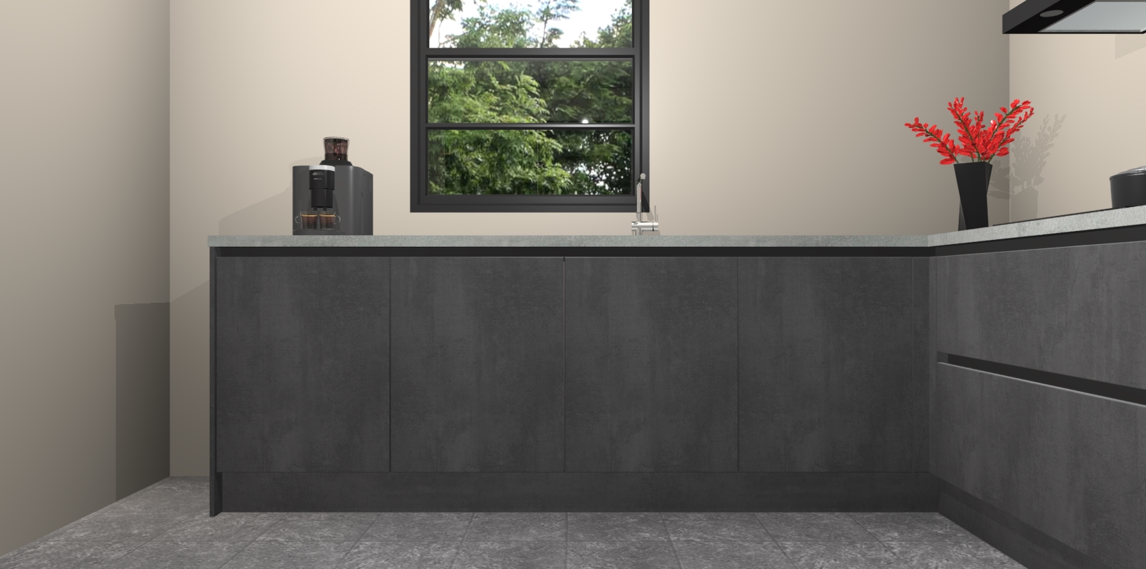 Als u op zoek bent naar stijl in combinatie met optimale efficiëntie, dan is de Beton Zwarte greeploze keuken Porto de perfecte keuze voor elk modern huis. Plaats vandaag nog uw bestelling en begin met koken in uw nieuwe keuken voor u het weet!