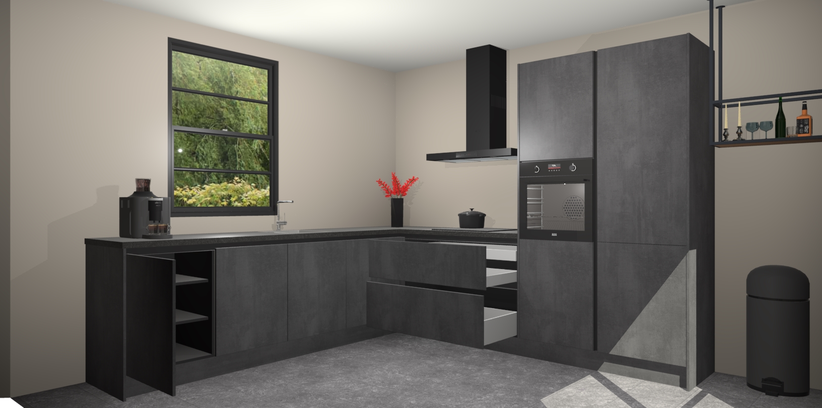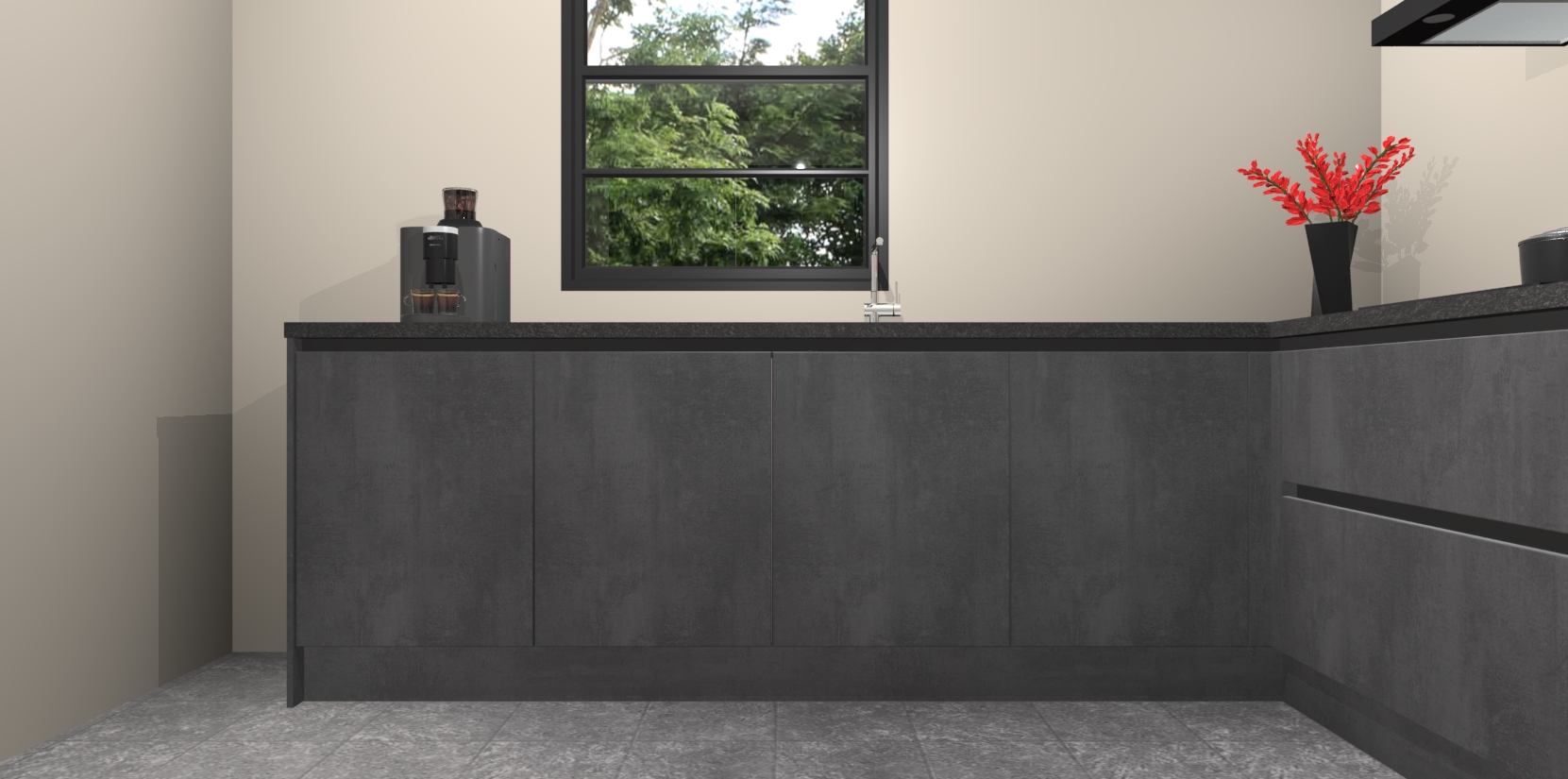 Als u op zoek bent naar stijl in combinatie met optimale efficiëntie, dan is de Beton Zwarte greeploze keuken Porto de perfecte keuze voor elk modern huis. Plaats vandaag nog uw bestelling en begin met koken in uw nieuwe keuken voor u het weet!