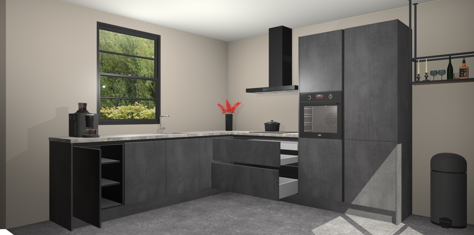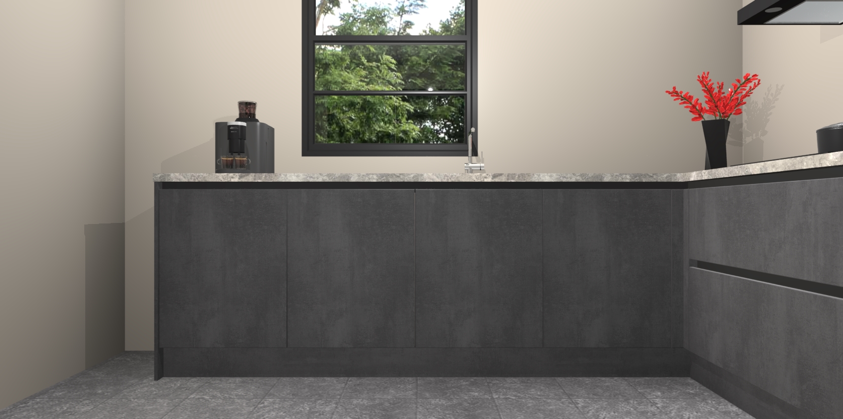 Als u op zoek bent naar stijl in combinatie met optimale efficiëntie, dan is de Beton Zwarte greeploze keuken Porto de perfecte keuze voor elk modern huis. Plaats vandaag nog uw bestelling en begin met koken in uw nieuwe keuken voor u het weet!
