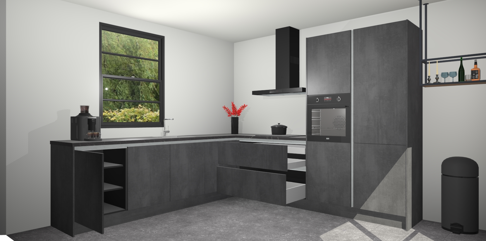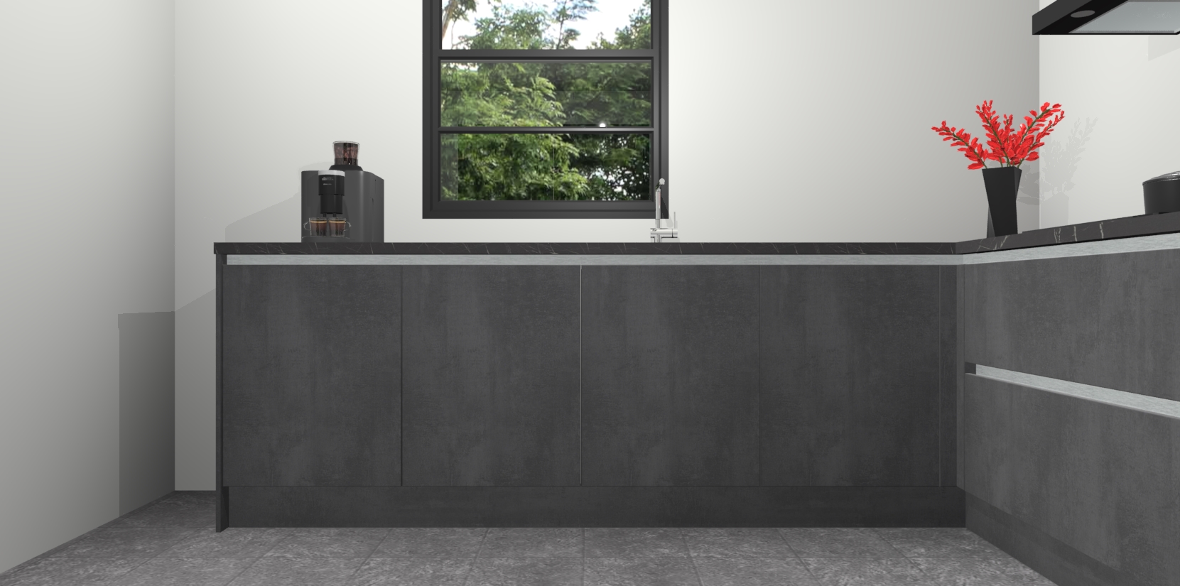 Als u op zoek bent naar stijl in combinatie met optimale efficiëntie, dan is de Beton Zwarte greeploze keuken Porto de perfecte keuze voor elk modern huis. Plaats vandaag nog uw bestelling en begin met koken in uw nieuwe keuken voor u het weet!