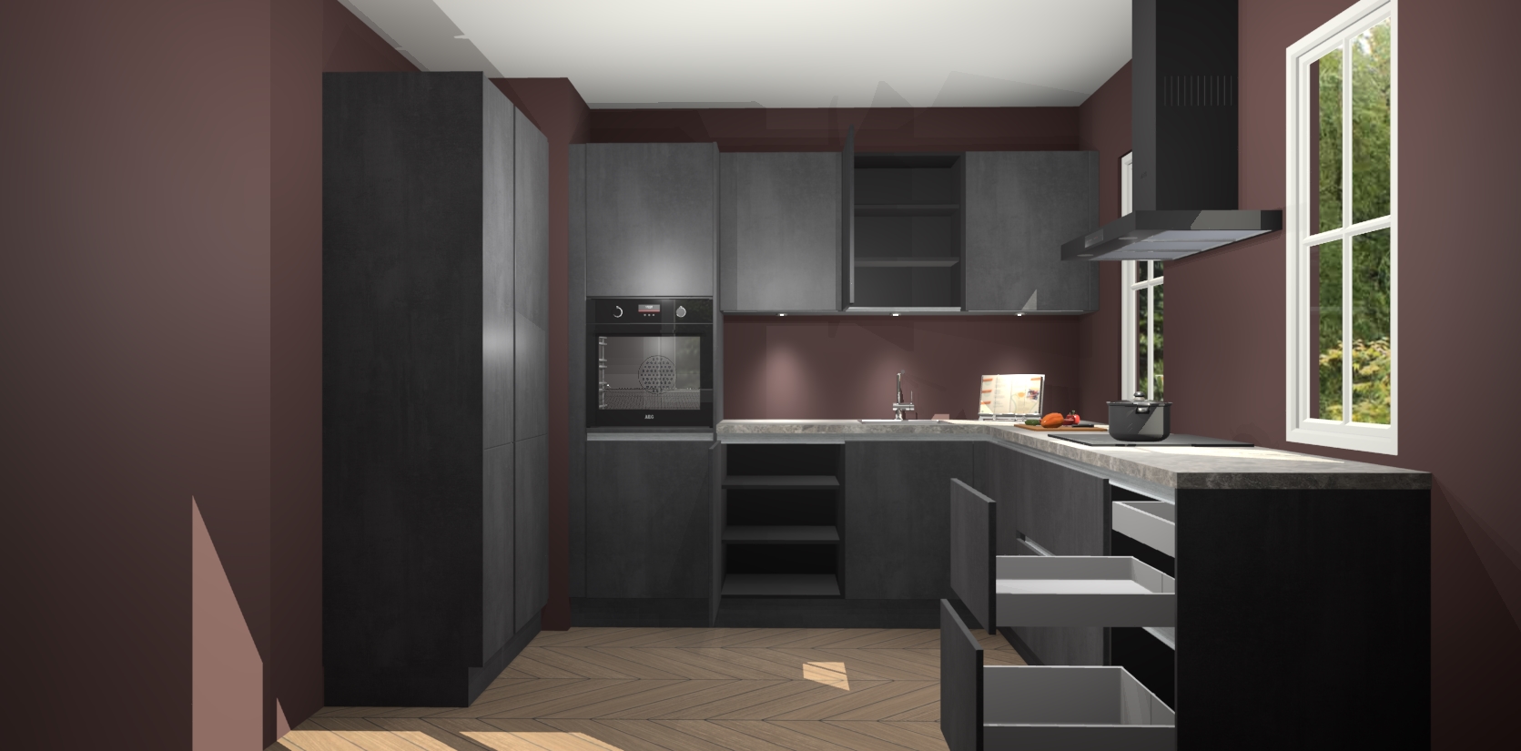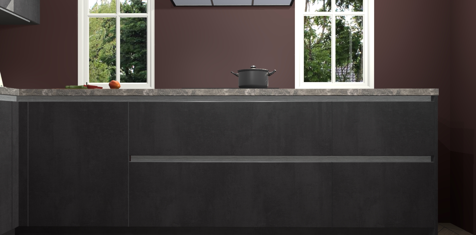 En met onze scherpe prijzen hoeft u niet in te leveren op kwaliteit. Beton zwarte greeploze keuken Regina is de perfecte combinatie van functioneel en betaalbaar, dus waarom zou u ergens anders zoeken naar de keuken van uw dromen?