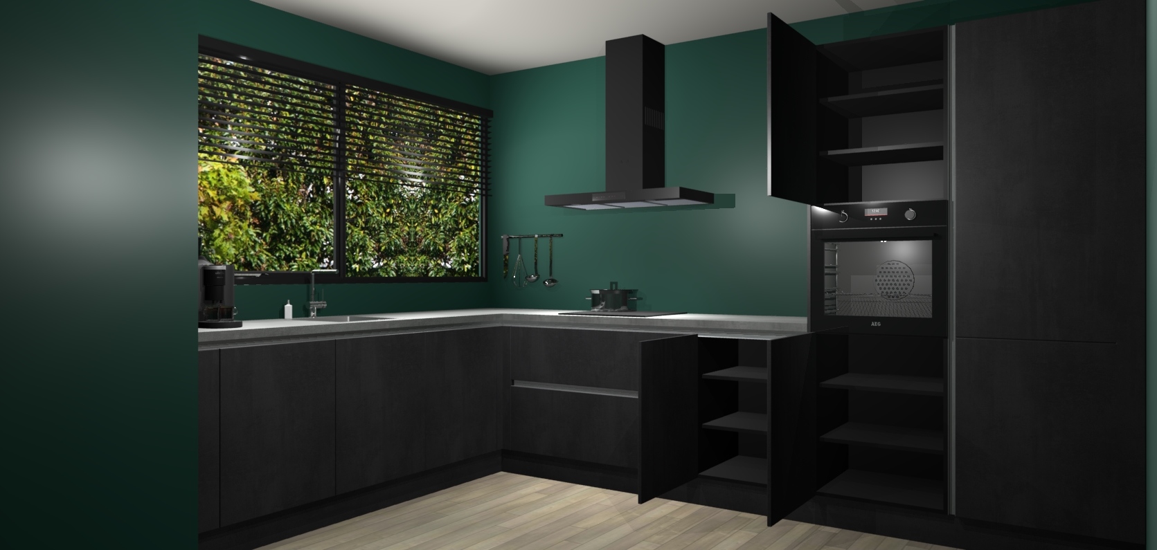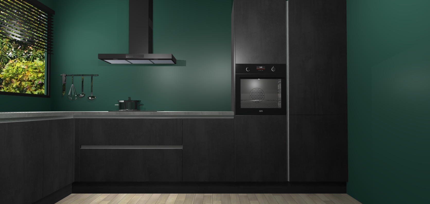 Met een modern, tijdloos design en ruime opslagruimte, zult u zich in no-time thuis voelen in uw nieuwe keuken. Uw leven wordt eenvoudiger met de soft-close deuren die voor het ultieme stille comfort zorgen - geen geluid dat u stoort terwijl u kookt. Ook is de keuken voorzien van 5 ingebouwde apparaten: een oven, inductie kookplaat, afzuigkap, vaatwasser en koelkast. Deze kunnen gemakkelijk na bestelling worden bijgewerkt naar AEG - waardoor uw luxe ervaring compleet is.