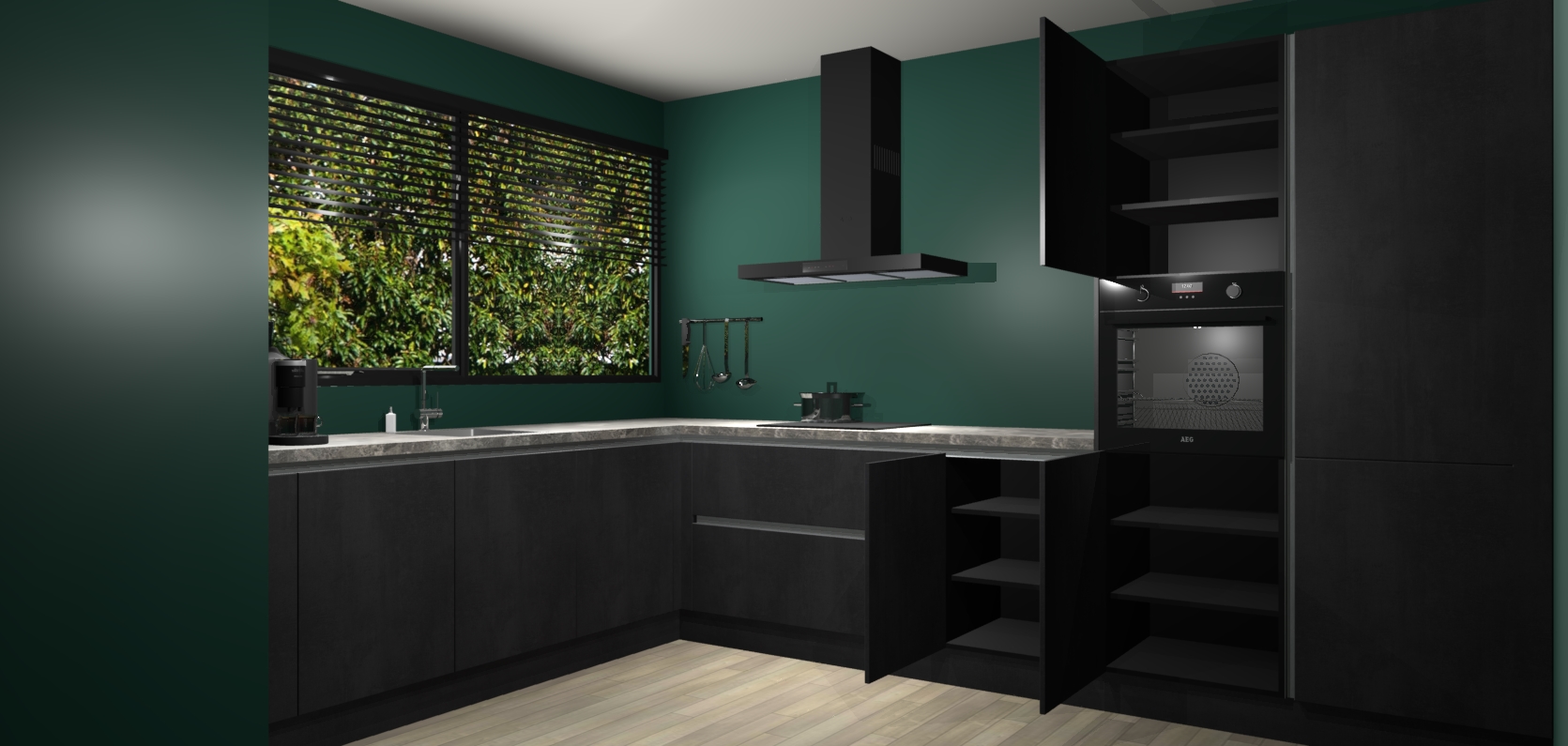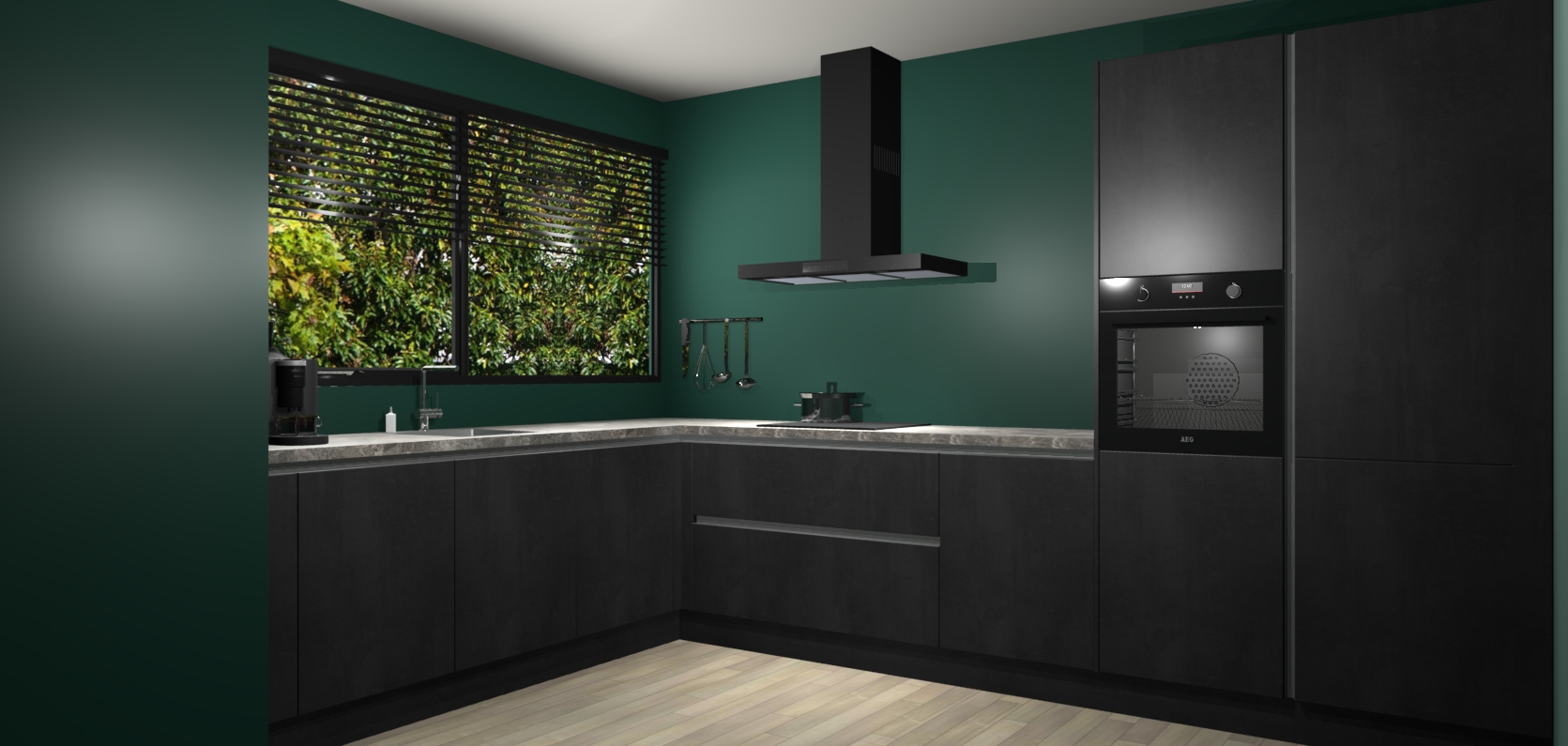 Wij presenteren de revolutie in keukens: de Beton Zwarte greeploze keuken Rhodos. Met modern design, een tijdloos uiterlijk en kasten die al voor gemonteerd worden geleverd, laat deze stijlvolle keuken uw kookervaring op een hele nieuwe manier transformeren.