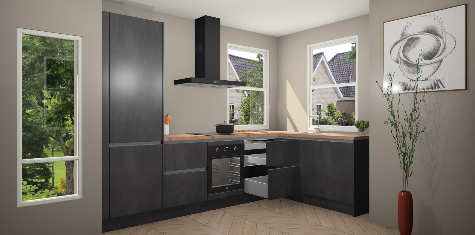 Mis deze geweldige kans niet! Met een Beton Zwarte greeploze keuken Salzburg krijgt u schoonheid van kwaliteit voor een overslaanbare prijs - wat wilt u nog meer? Van een stijlvol nieuw middelpunt in uw leefruimte en gemakkelijke upgrademogelijkheden, verwen uzelf vandaag nog met de Beton Zwarte greeploze keuken Salzburg!
