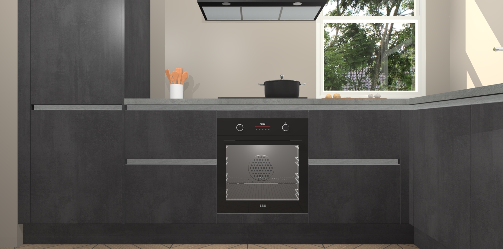 Wat maakt deze keuken zo bijzonder? Ten eerste geeft het houten werkblad uw ruimte een onmiskenbaar klassieke uitstraling. De natuurlijke afwerking roept warmte en elegantie op die nooit uit de mode zullen raken. Bovendien is het gemakkelijk schoon te houden en te onderhouden, zodat je er jarenlang plezier van kunt hebben. Als u op zoek bent naar extra gemak in uw keuken, dan heeft u bij het plaatsen van een bestelling bij ons ook de optie om uw toestellen te upgraden naar AEG-modellen - zo haalt u moderne innovatie van topmerken in apparatentechnologie rechtstreeks in huis.