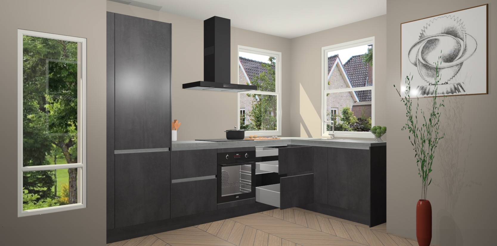 Mis deze geweldige kans niet! Met een Beton Zwarte greeploze keuken Salzburg krijgt u schoonheid van kwaliteit voor een overslaanbare prijs - wat wilt u nog meer? Van een stijlvol nieuw middelpunt in uw leefruimte en gemakkelijke upgrademogelijkheden, verwen uzelf vandaag nog met de Beton Zwarte greeploze keuken Salzburg!