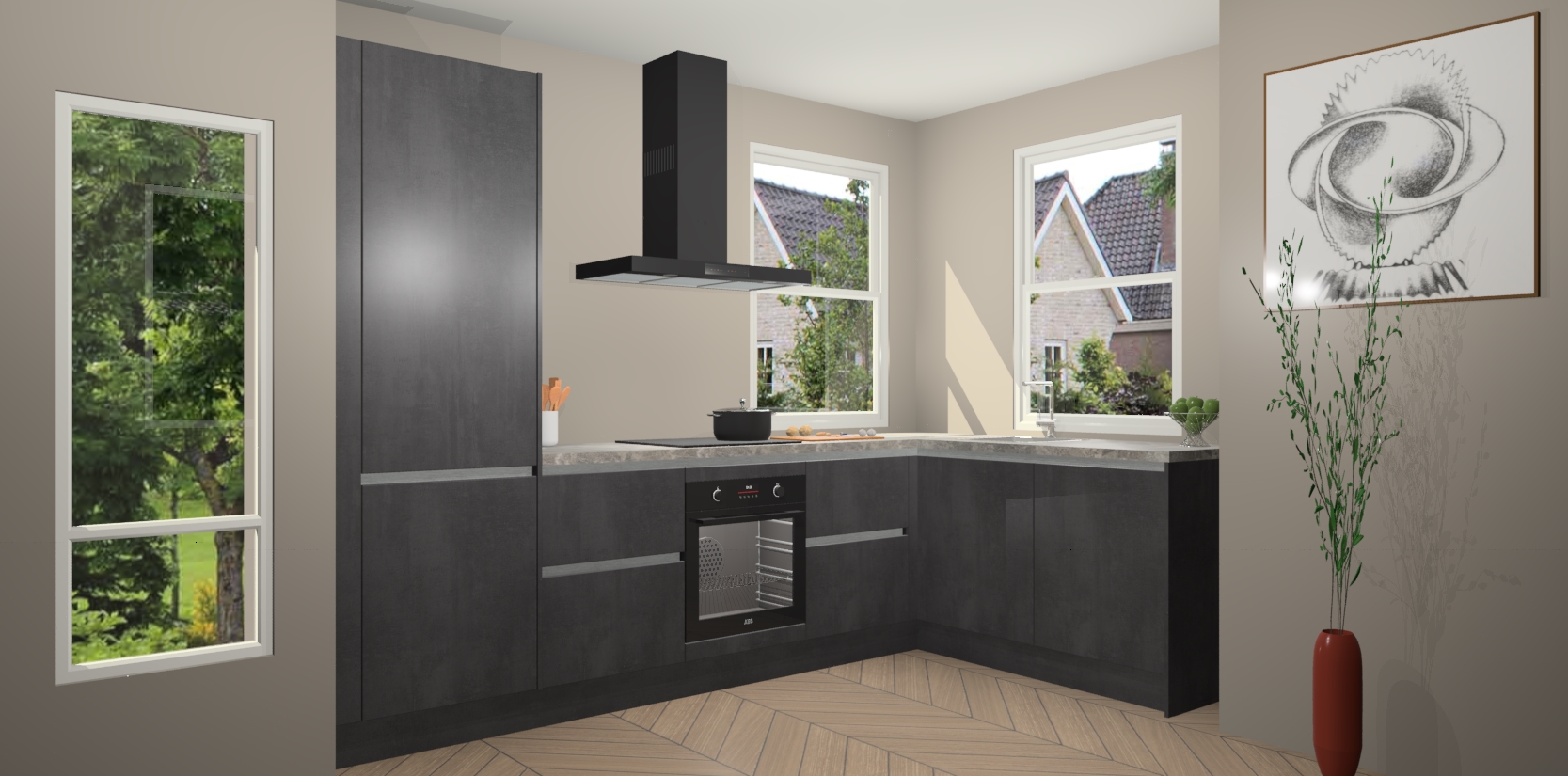 Mis deze geweldige kans niet! Met een Beton Zwarte greeploze keuken Salzburg krijgt u schoonheid van kwaliteit voor een overslaanbare prijs - wat wilt u nog meer? Van een stijlvol nieuw middelpunt in uw leefruimte en gemakkelijke upgrademogelijkheden, verwen uzelf vandaag nog met de Beton Zwarte greeploze keuken Salzburg!