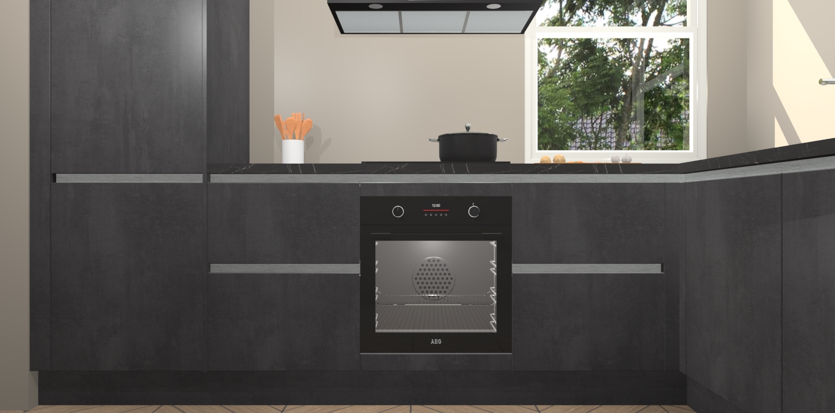 Wat maakt deze keuken zo bijzonder? Ten eerste geeft het houten werkblad uw ruimte een onmiskenbaar klassieke uitstraling. De natuurlijke afwerking roept warmte en elegantie op die nooit uit de mode zullen raken. Bovendien is het gemakkelijk schoon te houden en te onderhouden, zodat je er jarenlang plezier van kunt hebben. Als u op zoek bent naar extra gemak in uw keuken, dan heeft u bij het plaatsen van een bestelling bij ons ook de optie om uw toestellen te upgraden naar AEG-modellen - zo haalt u moderne innovatie van topmerken in apparatentechnologie rechtstreeks in huis.