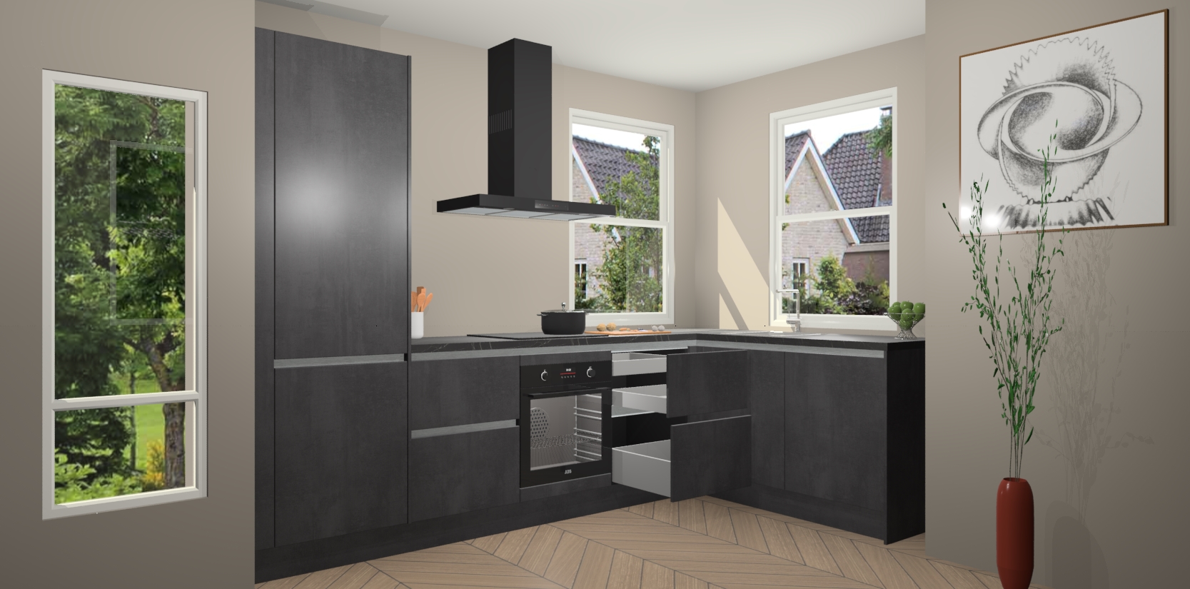 Mis deze geweldige kans niet! Met een Beton Zwarte greeploze keuken Salzburg krijgt u schoonheid van kwaliteit voor een overslaanbare prijs - wat wilt u nog meer? Van een stijlvol nieuw middelpunt in uw leefruimte en gemakkelijke upgrademogelijkheden, verwen uzelf vandaag nog met de Beton Zwarte greeploze keuken Salzburg!